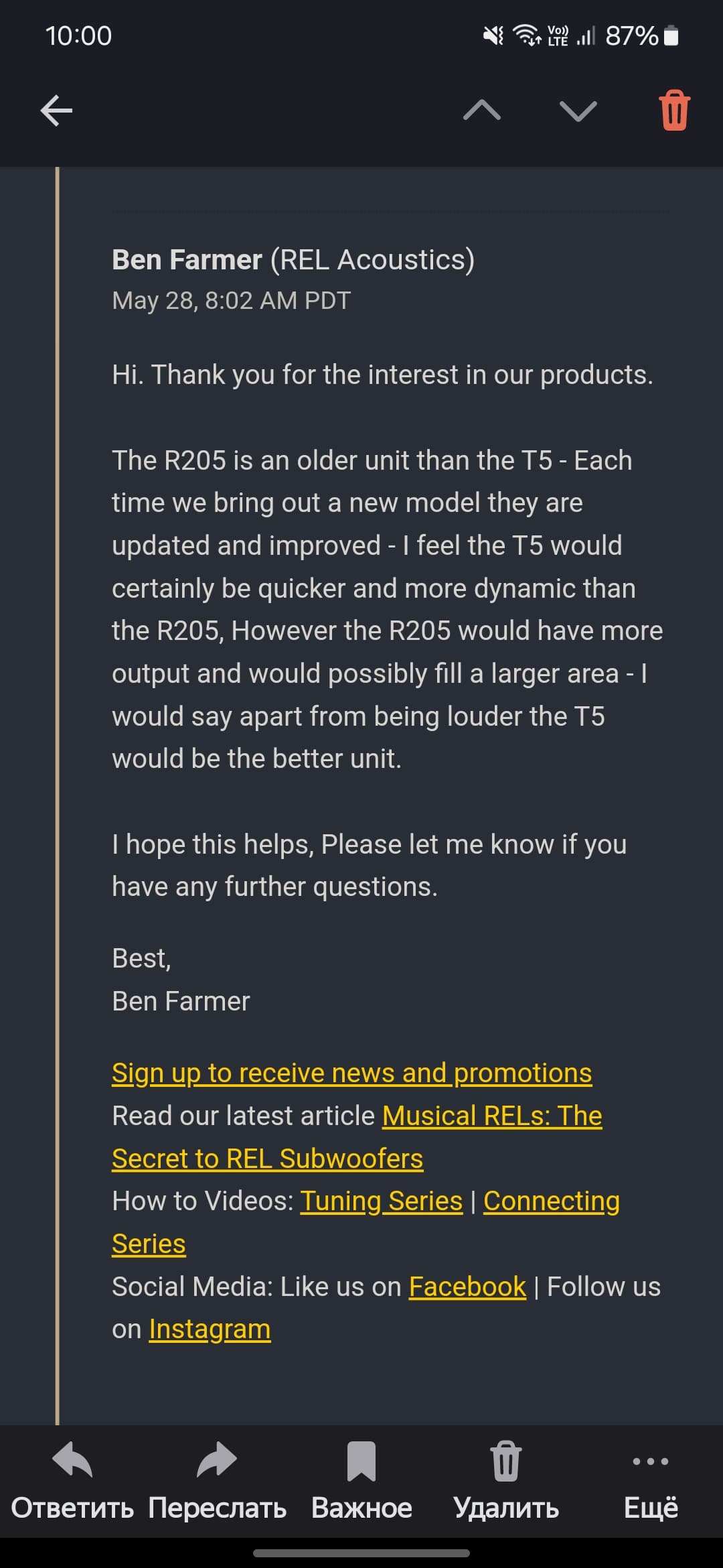 Например, REL Strata 5 по паспорту играет от 16 Гц, тогда как T9x всего от 27 Гц. Для сабвуфера это целая пропасть, разве нет?