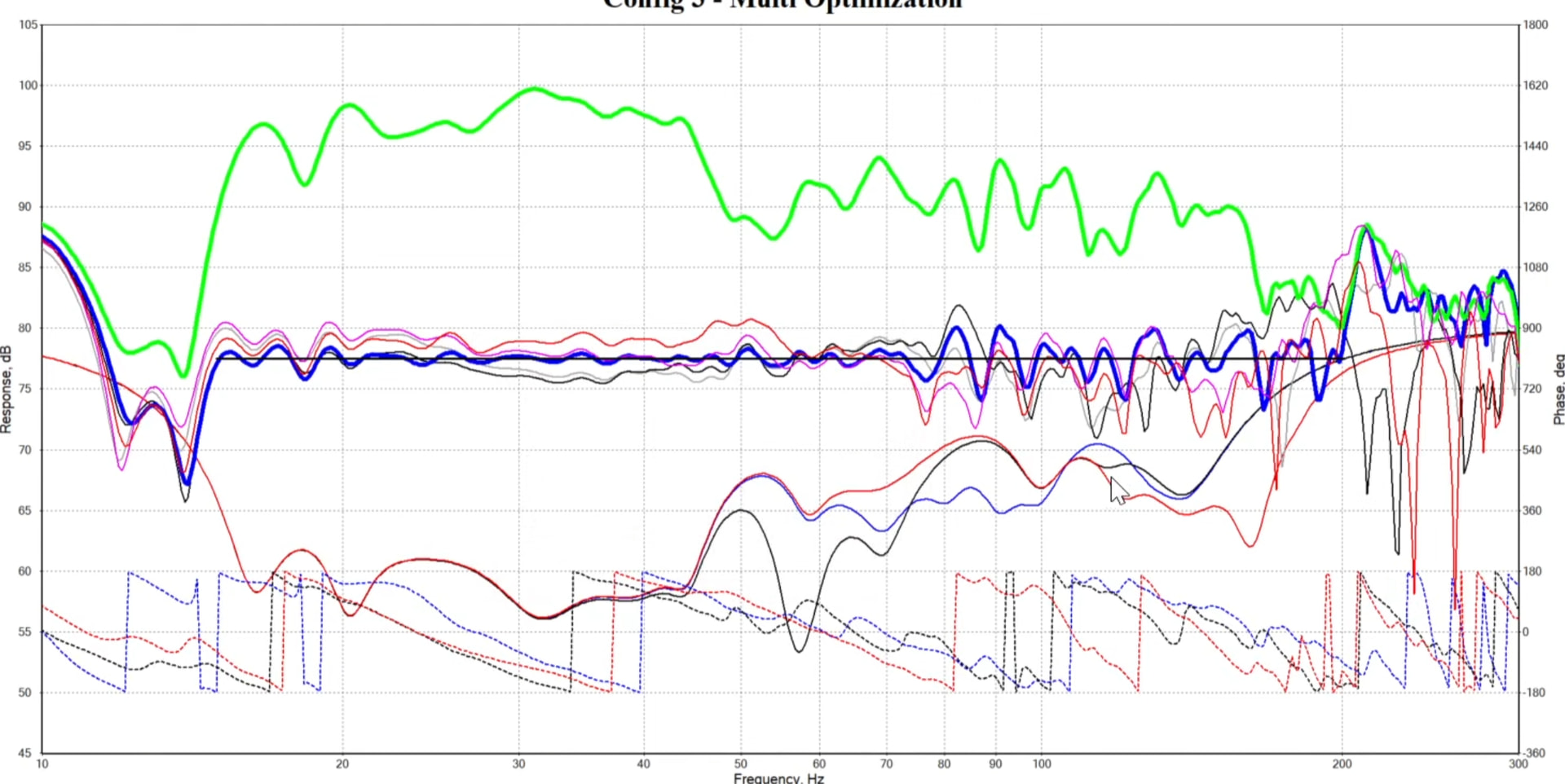 Вся возня только из-за того, что ресивер пока имеет только один выход на саб (фактически два, но они параллельны). Если бы ресивер имел независимые выходы, то можно было бы доверить сшивку системе калибровки. Хотя есть опасения, что оптимизируя каждый саб по отдельности, она бы начала вытягивать провалы, что делать не нужно. Т.е. возможно все-таки нужна будет ручная правка кривых.