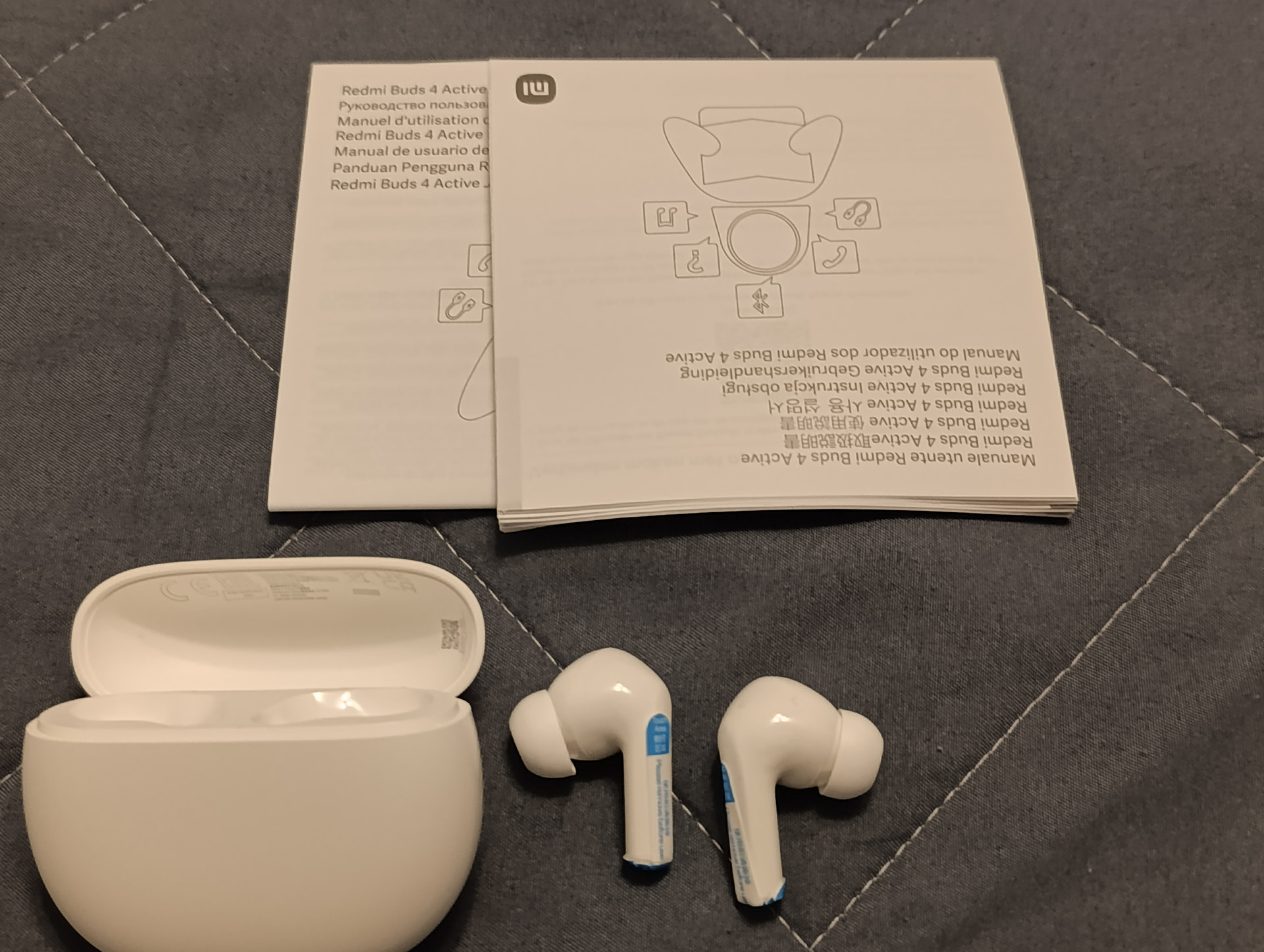 Redmi buds 4 active, не плохие за свою цену (1т.руб). Звук на 4, футляр удобный, поверхность шероховатая, т.е из рук выскальзывать не будет. В режиме разговора хорош. Вкладыши для моих ушей удобные.