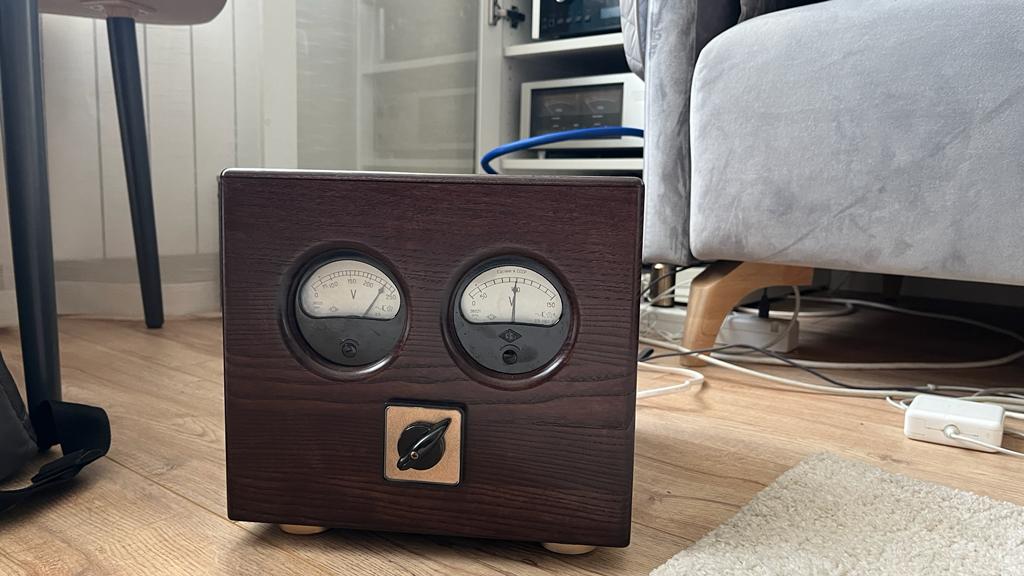 Главное достоинство ПТ – внешний вид: матовый деревянный корпус, «глаза» из бакелита со стрелочками, такой ядрёный советский Atompunk. Можно поставить в стойку и вообще не включать, а просто любоваться