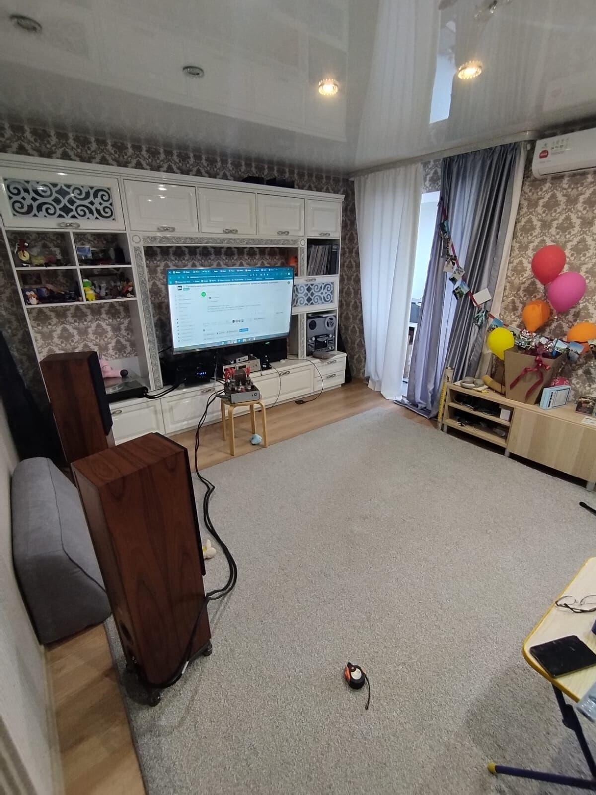 ухх, это не столь быстро получится! весь сетап придется разбирать, тут я только один провод и колонку перекинул с угла на середину комнаты ))) а что это даст? слушать то в такой обстановке все равно не выйдет