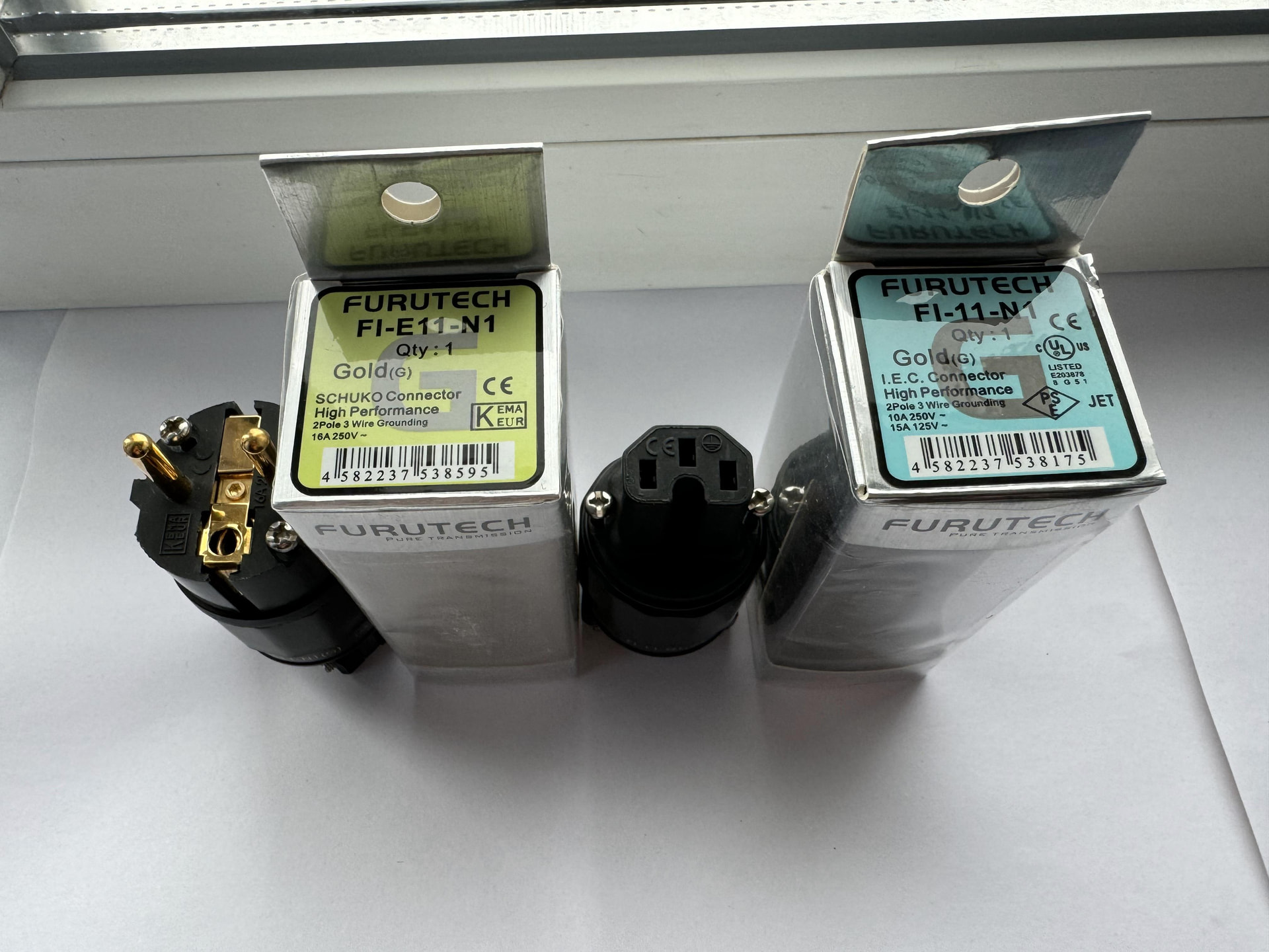 Продам комплект оригинальных б/у силовых разъемов FURUTECH FI-E11-N1(G) / FURUTECH FI-11-N1(G).Находятся в г. Нижний Новгород. Отправлю ТК СДЭК за счет покупателя. Цена 10 тысяч рублей.