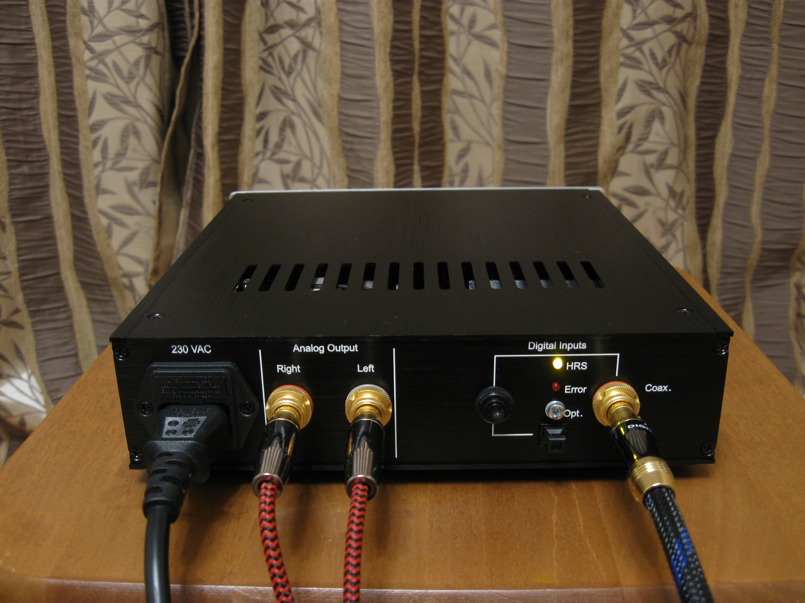 Здравствуйте. Хочу поделиться впечатлениеми от прослушивания ЦАПа Александра. Слушал на системе : CD Sugden 21 se, усилитель Sugden, пред Thorens 3000. Колонки делал под заказ, с 40см басовым динамиком. Провода, включая коаксиальный - Чернов. Питания провода все базовые. Вообщем. Прогрел ЦАП часов 100 перед прослушиванием. Первое прослушивание считаю самое важное, можно услышать разницу в подаче до и после. Вот некоторые услышанные изменения. Звук из колонок стал намного длиннее, он меня (окутал), появилась невидимая живая связь, заработали обе колонки дополняя друг друга. Музыка стала чище. Голос и бэк вокал на высоте в прямом смысле. Он возвышается и не смешивается. Всё как говорится на своём месте, на своей высоте. Также басс. Он приобрёл приятную упругость и глубину… Слушаю ЦАП около недели. Что мне дал ЦАП или чего у меня не было? Прежде всего музыка подаётся чище, это распределение всех инструментов по своим местам из общего (котла). Изменились высокие на более отчетливые и выразительные. Стал лучше (больше) объём подачи музыки, углубился бас… Разработчик порекомендовал поменять направление коаксиального кабеля и не напрасно. Музыкальная сцена растянулась по диагонали ещё шире. Сам не ожидал. Пробовал подключение по оптике к телевизору. Ютюб конечно не CD, но вполне сносно. Как бы в двух словах всё. В планах поменять сетевые провода, которые до 2х метров. Так же не пробовал ЦАП с усилителем Thorens 3000. Интересно, как запоет. Всем спасибо.