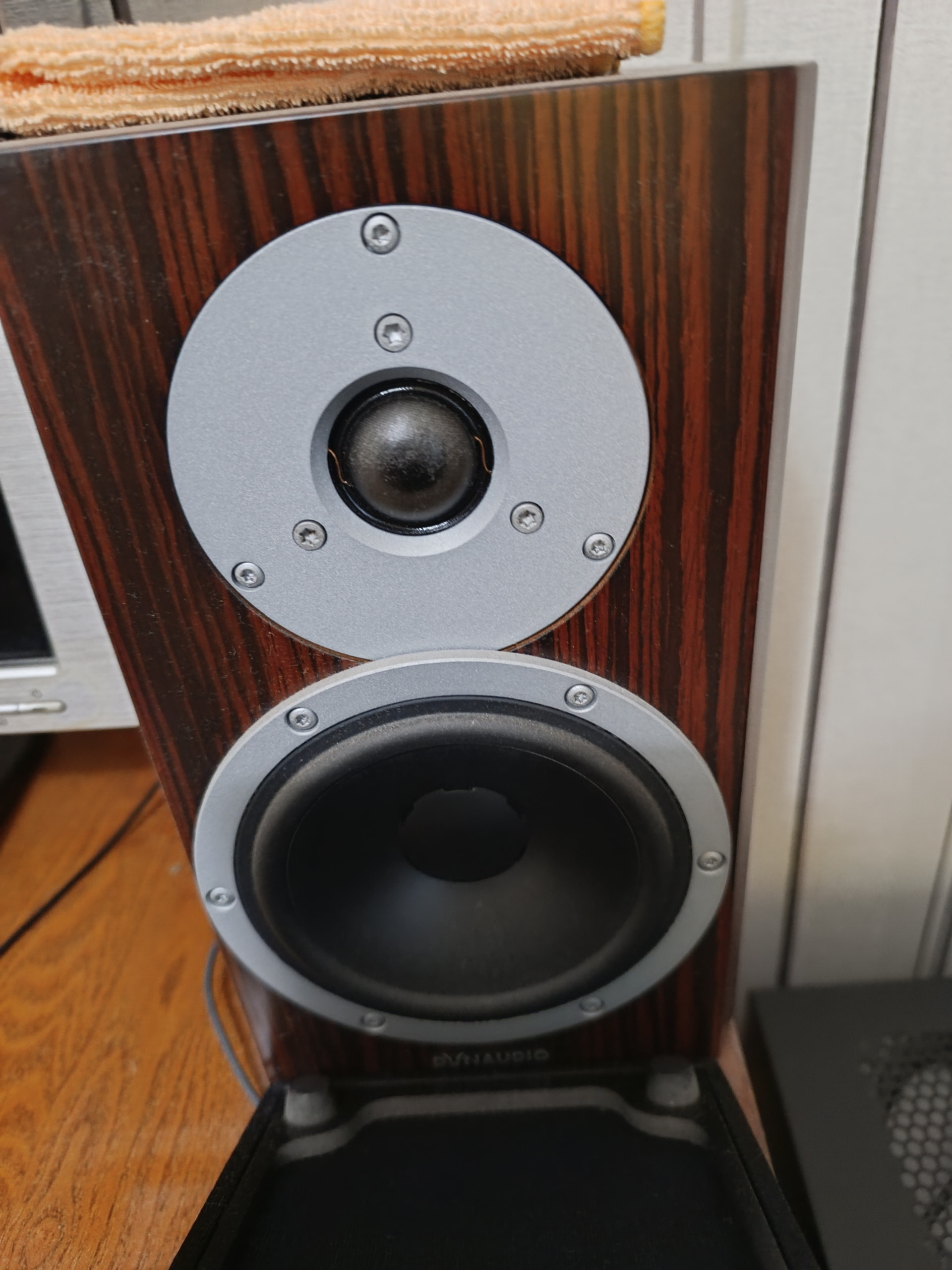 Полочной акустики Dynaudio Exite x14 отделка красное дерево.