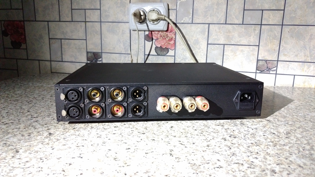 Имеет 4 вывода звука: 6.3 для наушников, два 3-xlr, 4-xlr - для балансного подключения наушников, двумя или одним кабелями, и акустические терминалы, мощи хватает для чувствительной акустики.