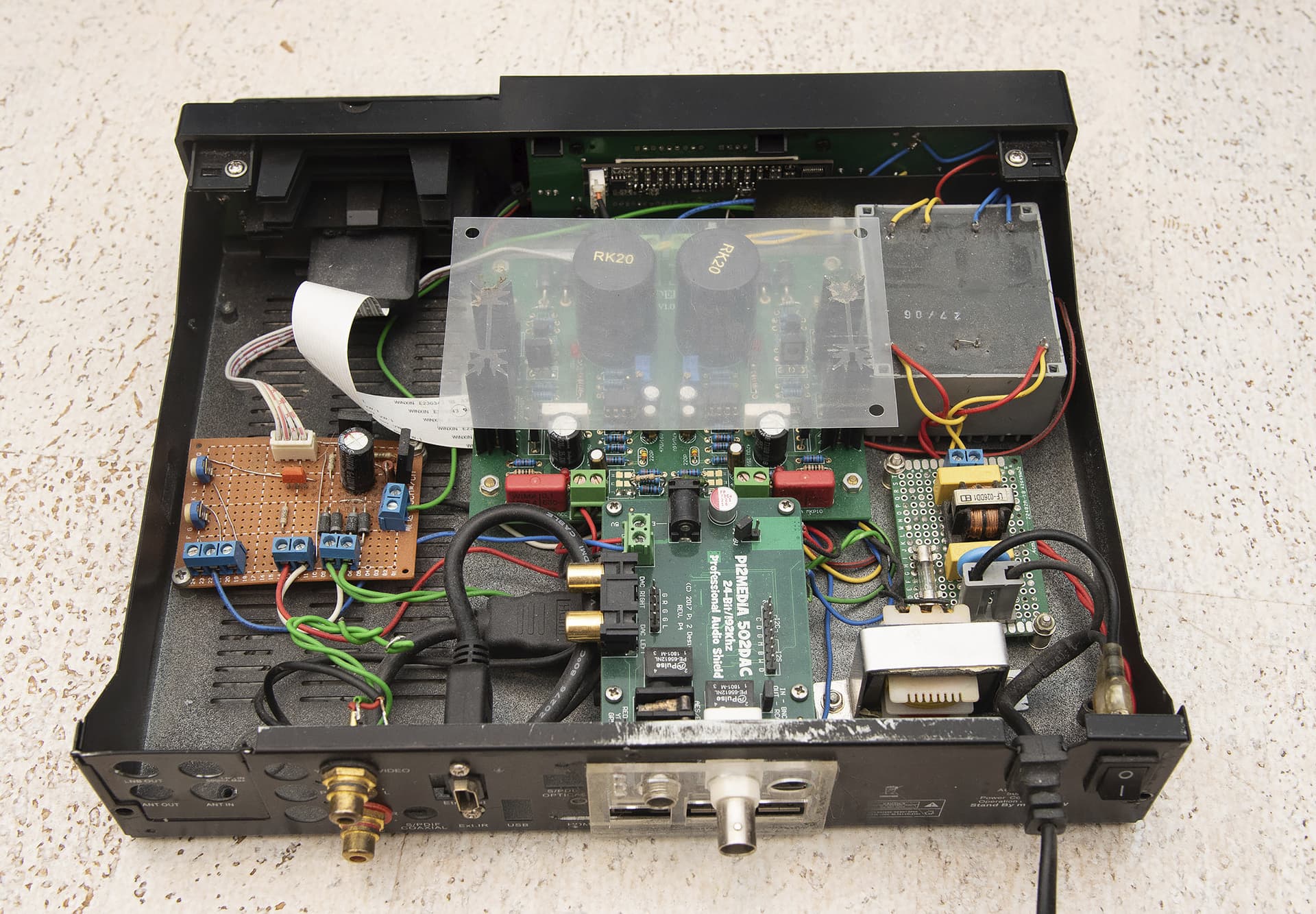 Далее Pi2 Media DAC 502 rev.4 (обычно пишут “тот самый”), питание и индикация, но что и как там реально - не знаю. Над питанием колдовал некий питерский мастер, однако подробности мне неведомы.