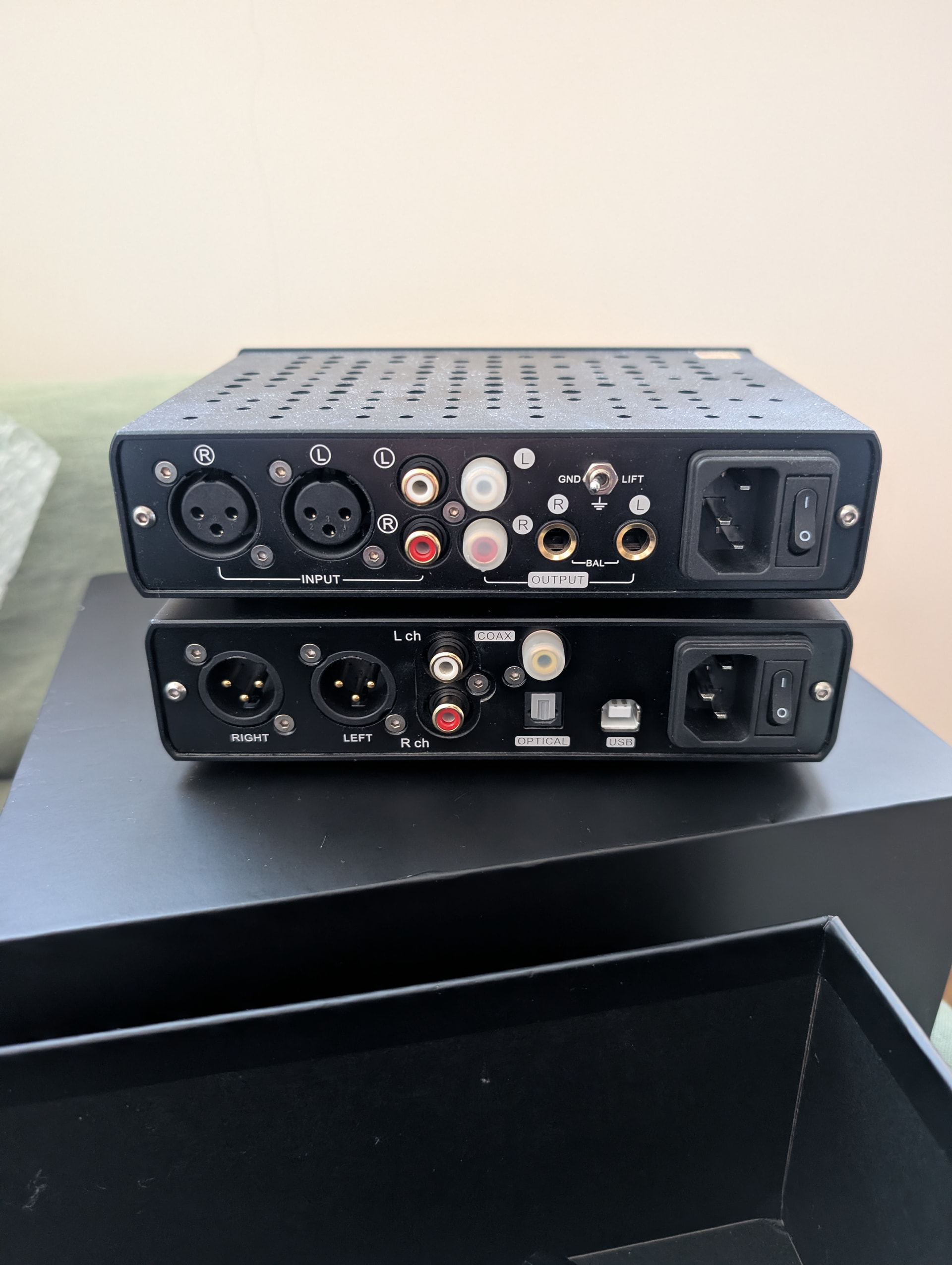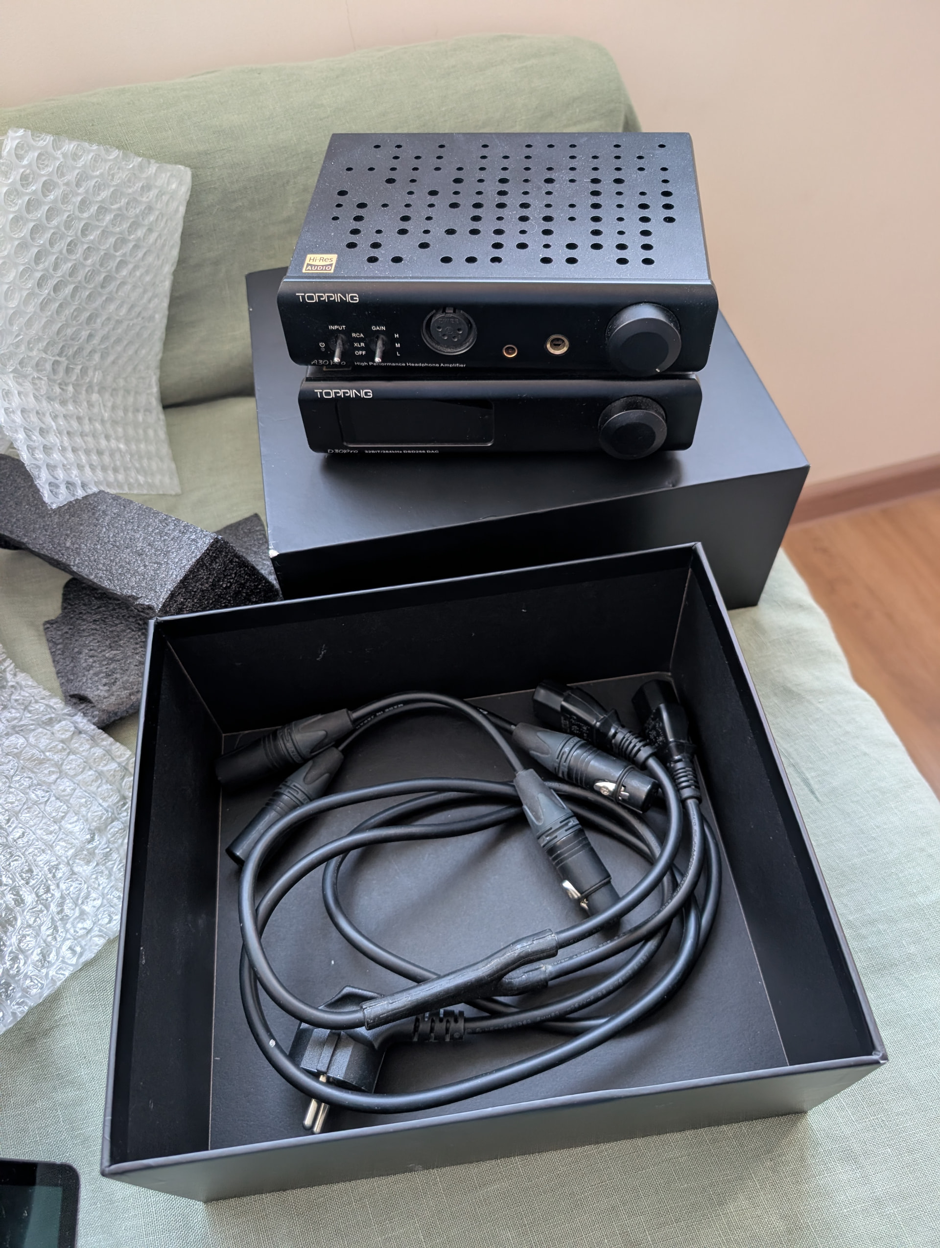 Продаю комплектом ЦАП + усилитель для наушников в идеальном состоянии. В комплекте пульт, межблочная пара на витом 4-жильном экранированном проводе Canare и разъёмах Neutrik, а также сдвоенный кабель питания.