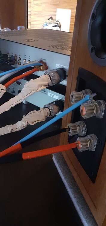 Нюансы - силовые на усе Primare i21 и на сидюке Primare CD21, через транс гальванической развязки Legrand. Межблочник из сиди на усилитель. Акустические на нижние клеммы акустики Dali Icon (!) верхние клеммы пока оставил на французской витой паре 6cat, перемычки сняты.