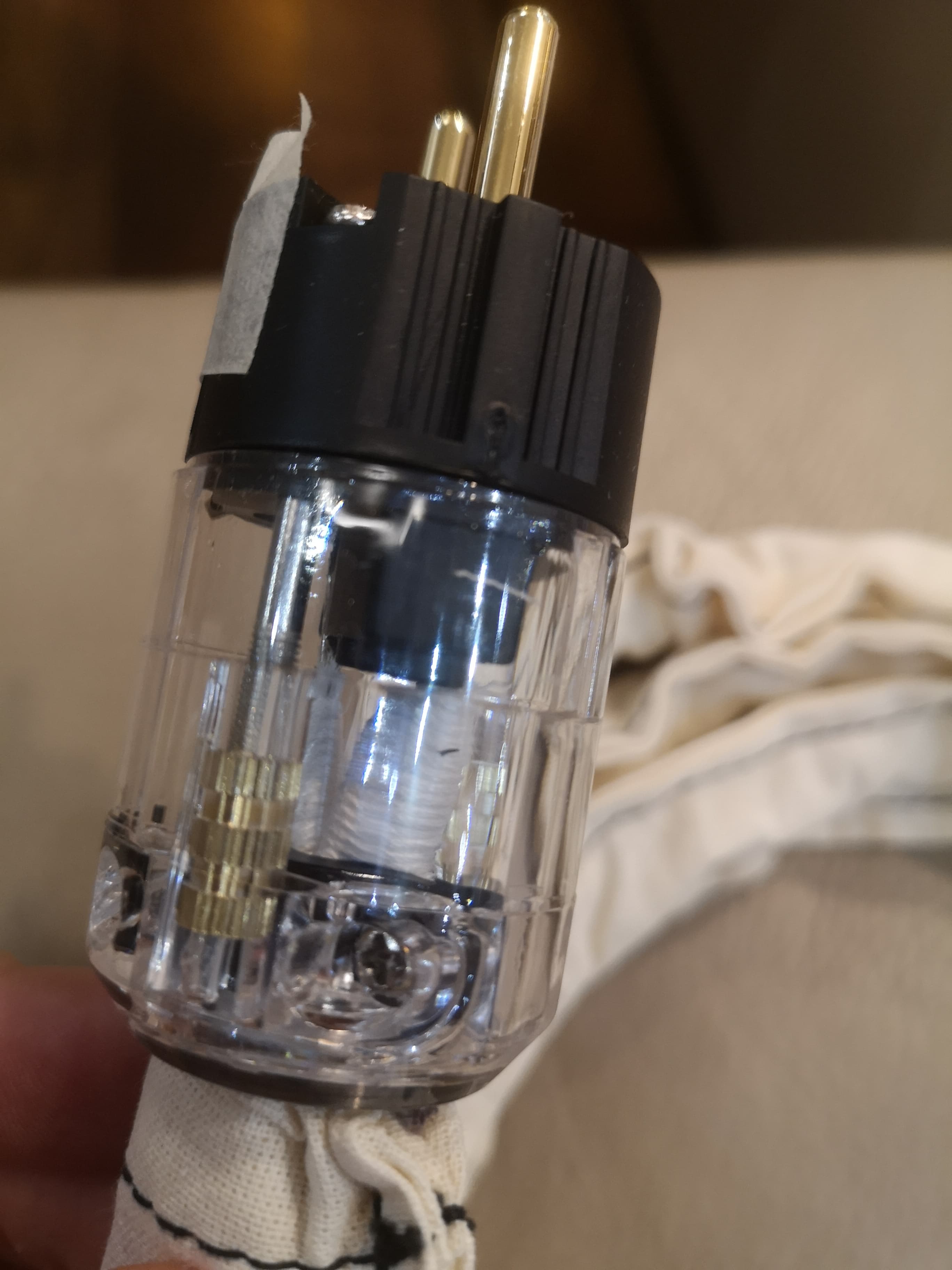 Сравнивал с имеющимися кабелями от местного мастера: на колонках монокристалическая медь 6мм2, вилки с родием. На стримере, монокристалич медь 2мм2,вилки с родием. Подключено в powergrip