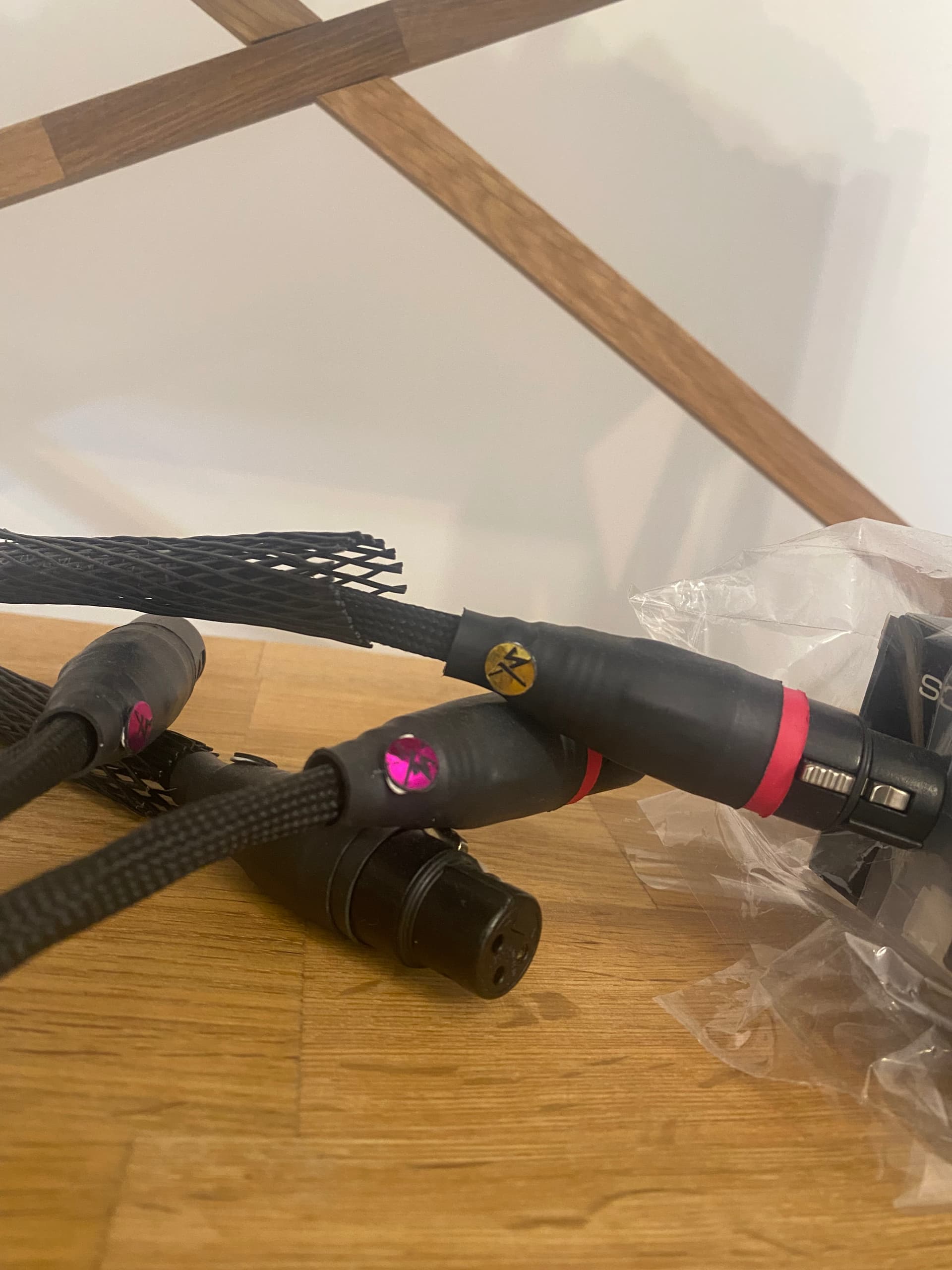 На межблочных кабелях у меня были разноцветные диски – они влияли на звук (и, кстати, не везде в ту сторону, которая мне больше нравилась). Посмотрим, как будет здесь.
