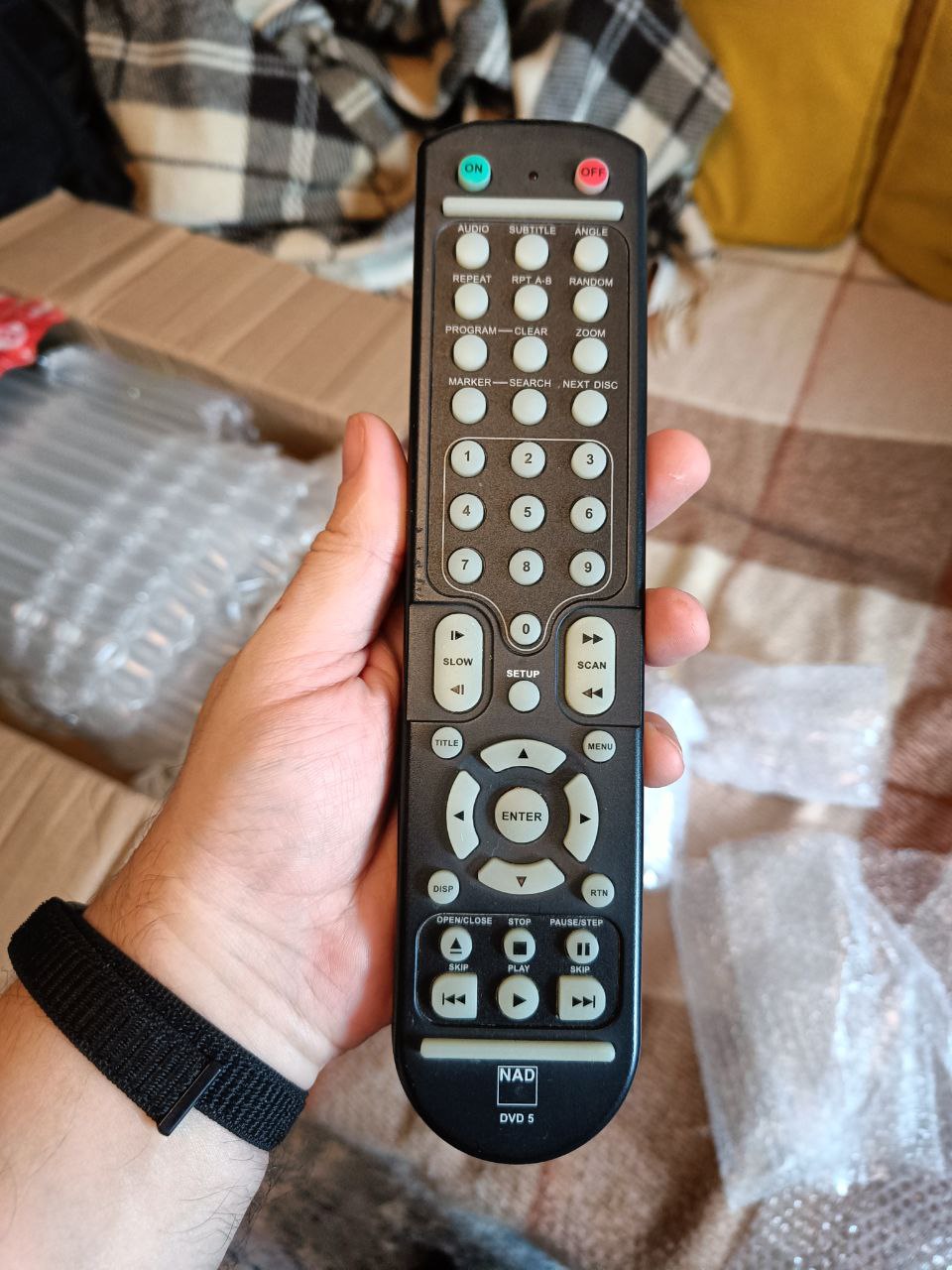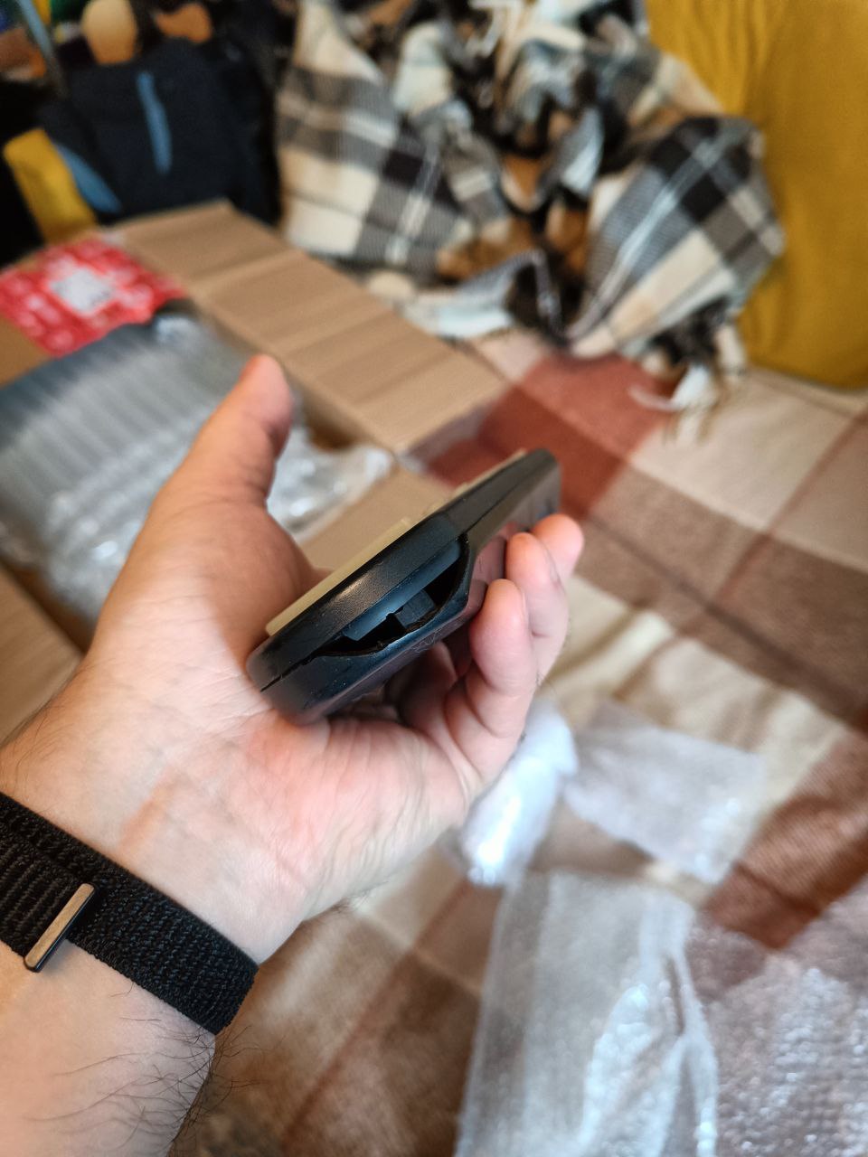 Единственное, пульт досылался отдельно и в целом не пользовался им и не планировал. Потому он всё время пролежал завёрнутым в пупырку, и только когда переупаковывал для отправки заметил скол на нижней части: