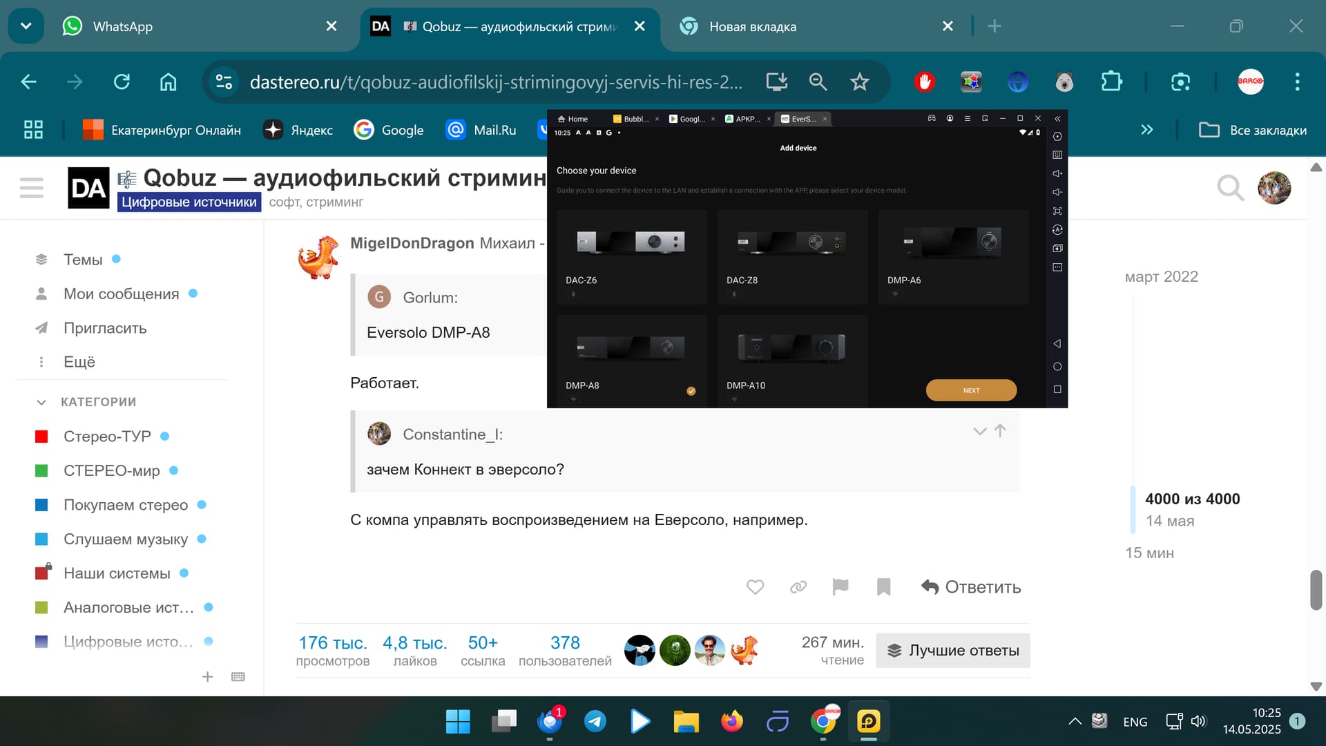 На сегодня хорошее ПО из популярных стримеров у Eversolo, Wiim, Bluesound, но и они по удобству проигрывают самому Qobuz”.