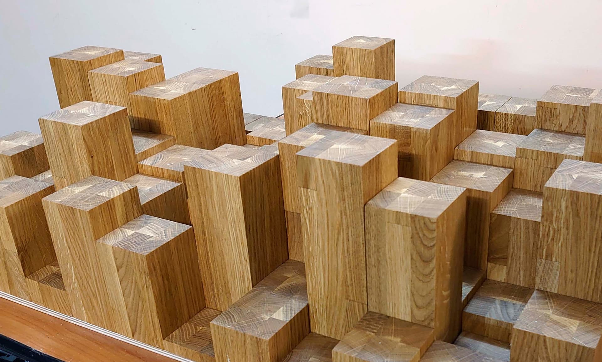 Для одного Скайлайна 60 на 60 см. и глубиной 20 см. понадобится 20 метров бруса. Это 10 тыс. руб. Нужно будет масло - еще тысяча. Подложка из фанеры - еще тысяча. Тюбик клея - 500 руб. Пару листов шкурки - еще 500 руб. Еще нужно заложить амортизацию инструмента (пылесос, шлифмашинка, торцовка) - хотя бы пару тысяч (с учетом торцовки помакитестее или пофестулистее для ровного реза).