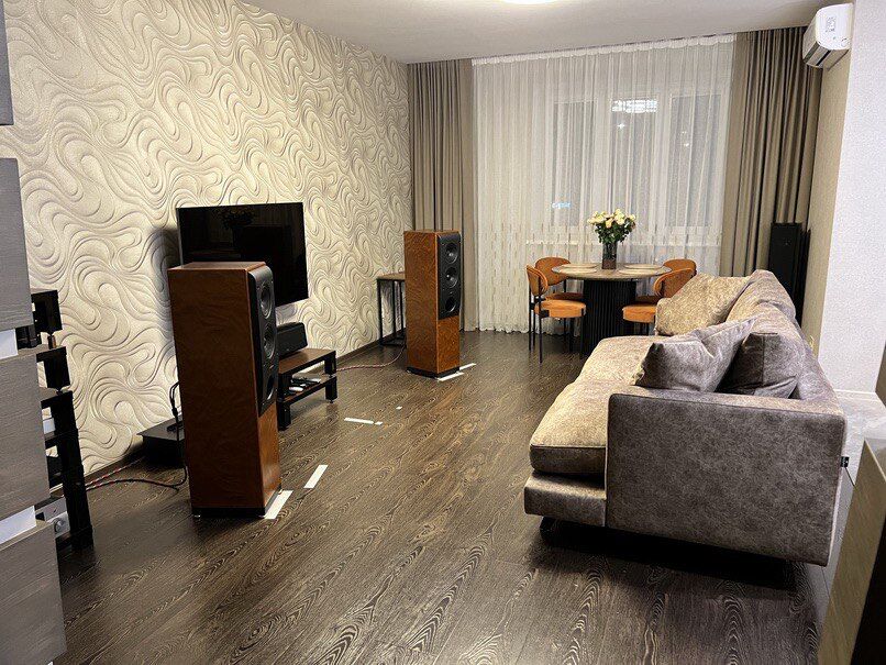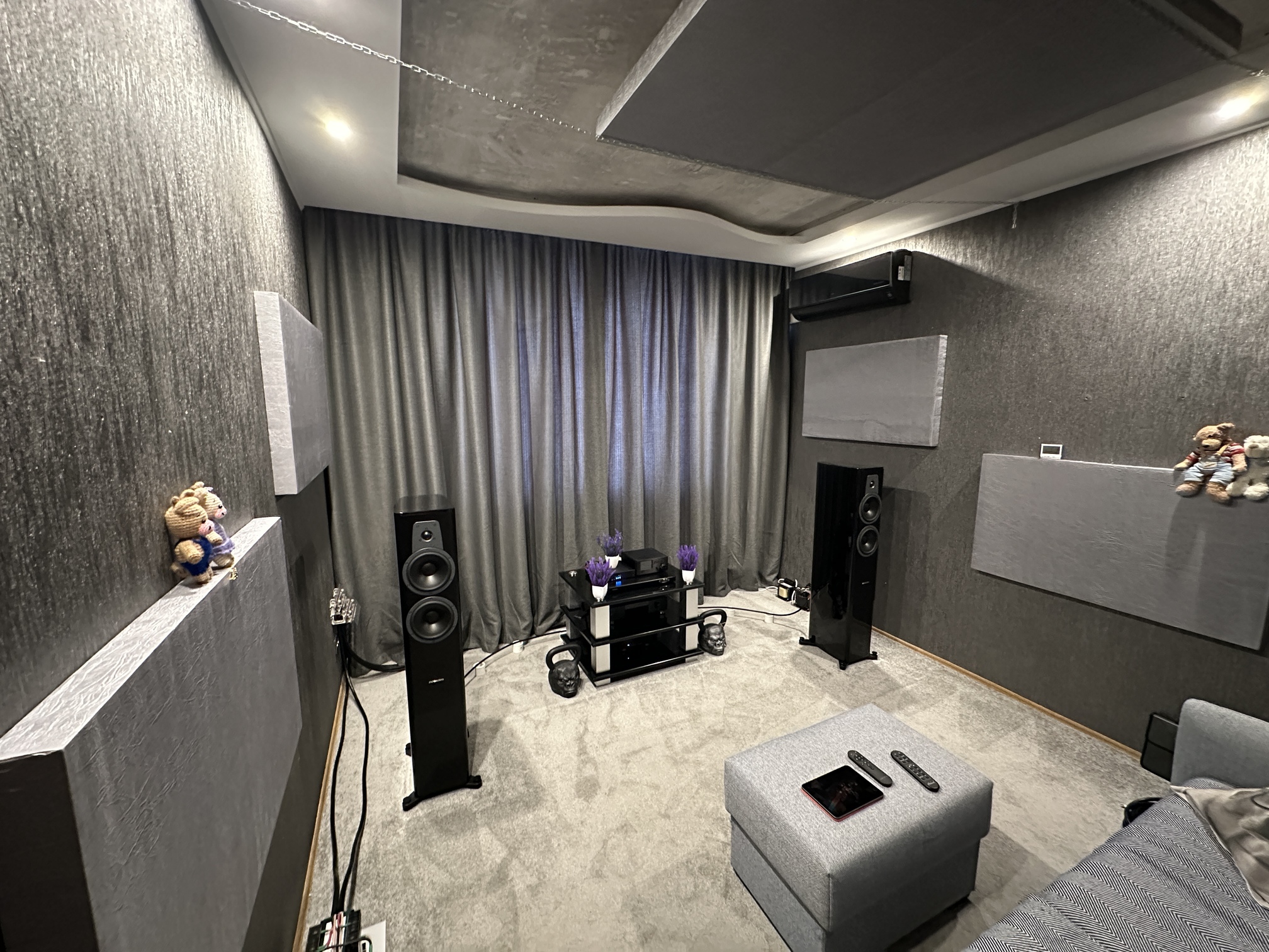 Все акустические конструкции на сегодняшний день носят временный характер. Когда окончательно определюсь с количеством и местом установки поглотителей, диффузоров и сабов, буду это всё приводить в надлежащий вид дабы вписать в интерьер.