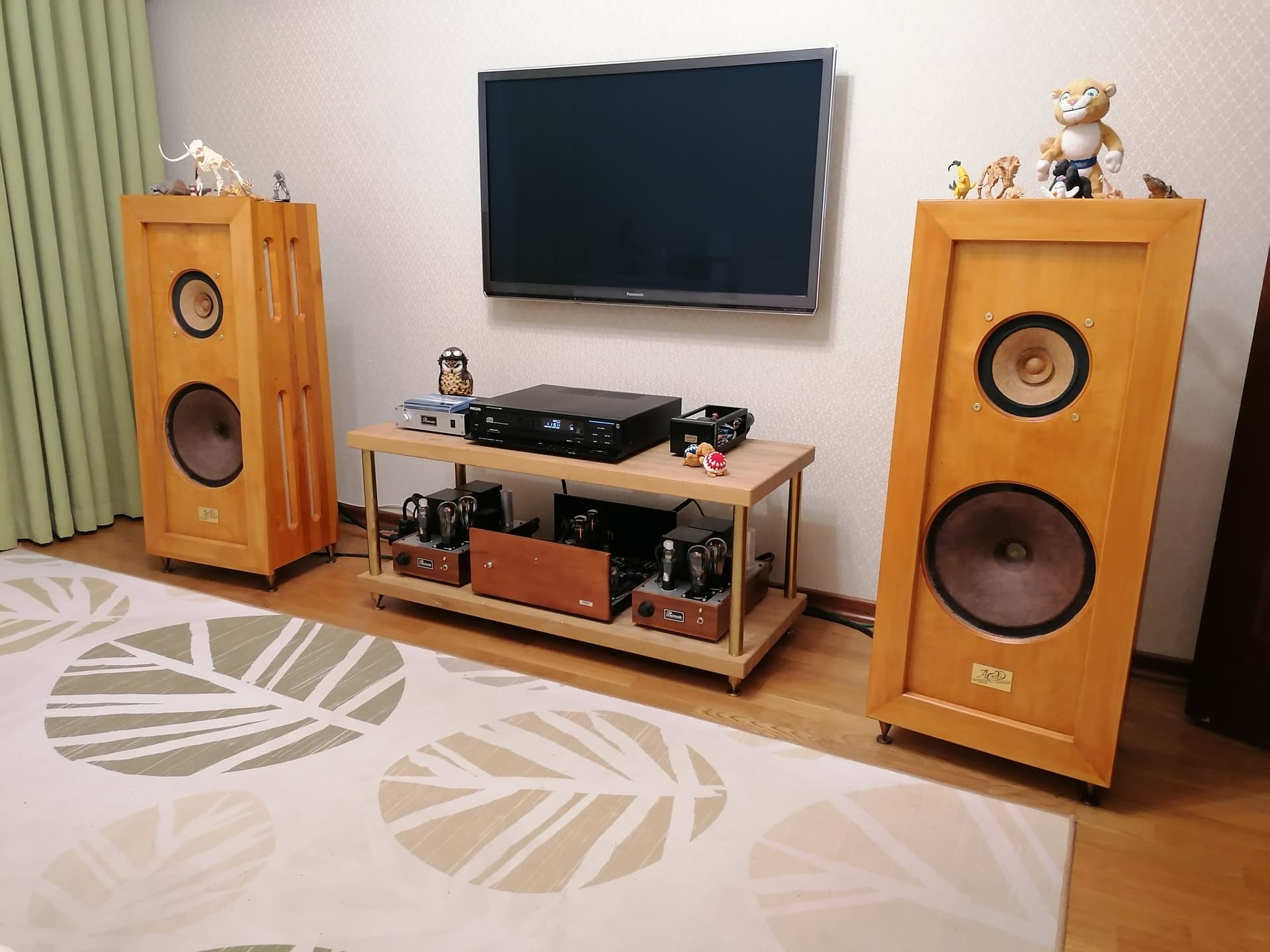 Акустика: 8" ширики в открытом оформлении с поддержкой снизу 12" в щелевом ПАСе. Динамики авторские Давыдова Гария;