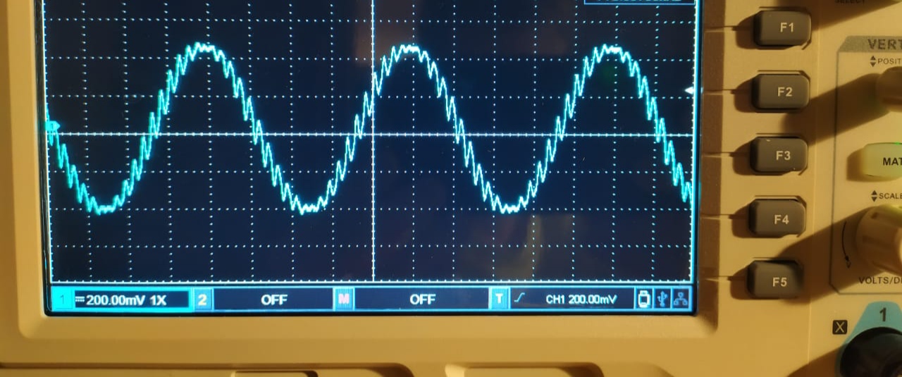 Вот примерно так выглядит синус 3кГц с частотой дискретизации 44.1кГц на выходе NOS ЦАПа без всяких фильтров на выходе