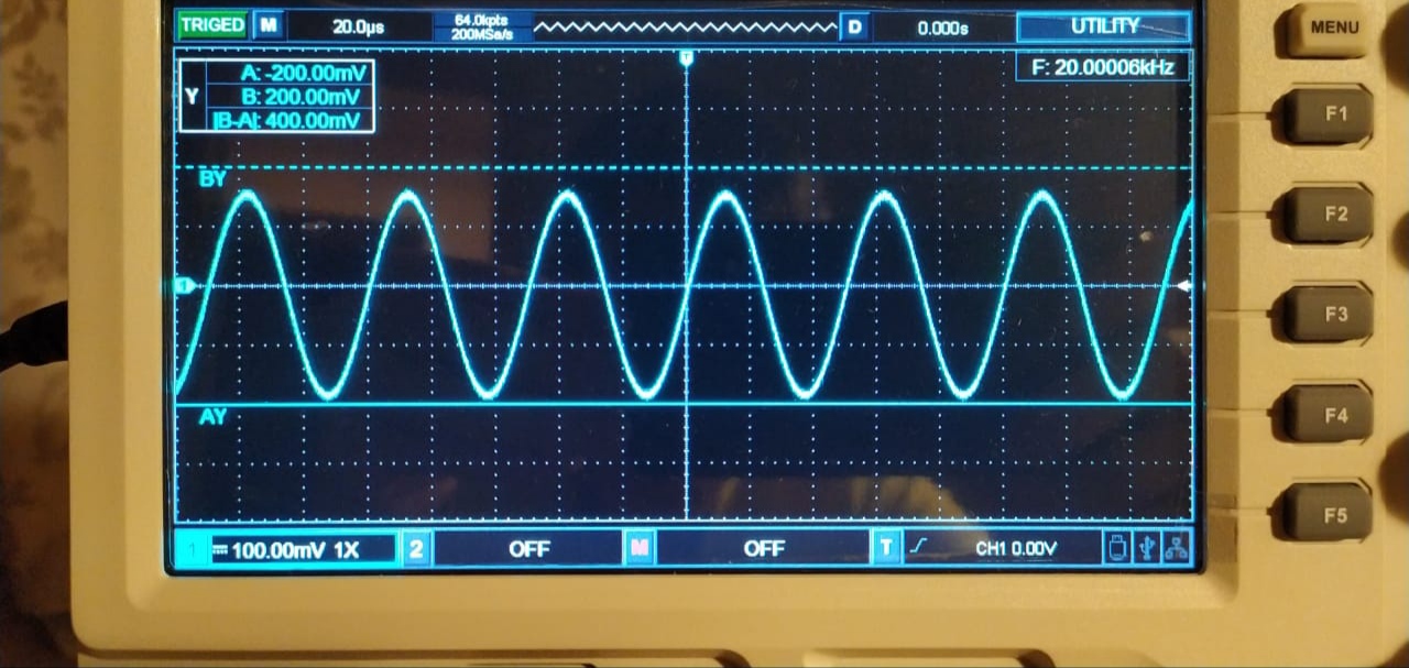Ну а вот так выглядит “синус” на выходе NOS ЦАПа на частотах близ 20кГц. (44.1кГц)