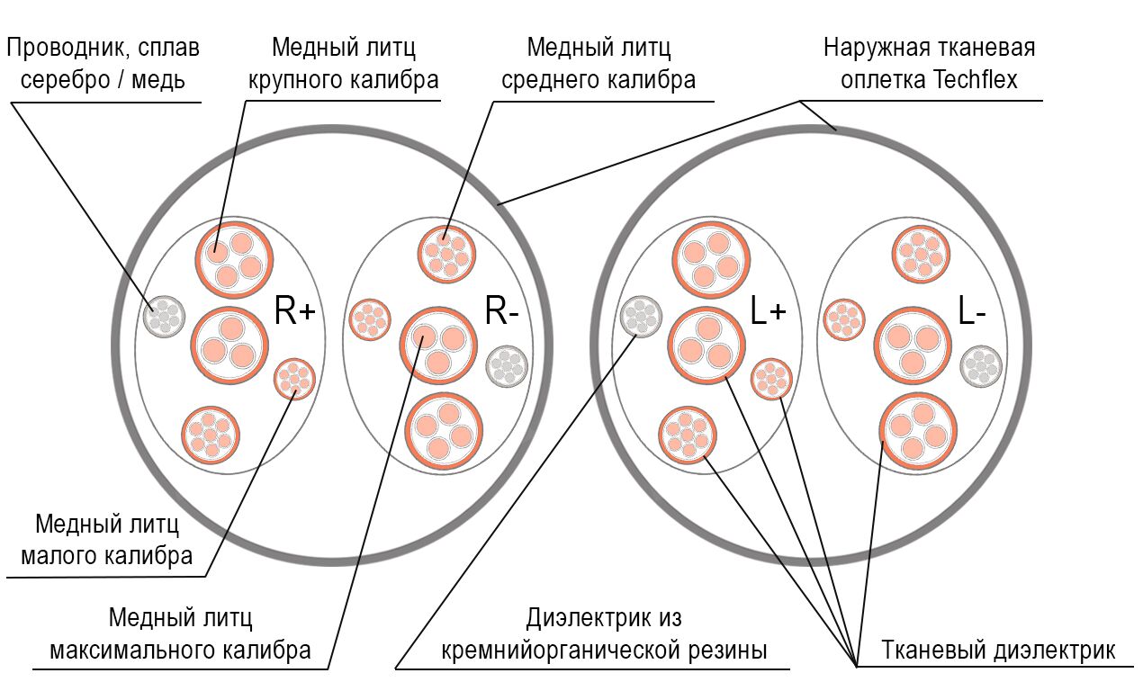 И хотя, сам проводник из сплава серебро/медь у них одинаков, число и сечение медных жил в RLS-70 значительно снижено.