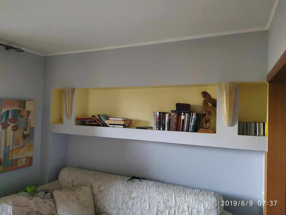 Высота 112см, от самого потолка начинается. В углу, рядом с картиной, продолжение вниз до пола, 18х31см