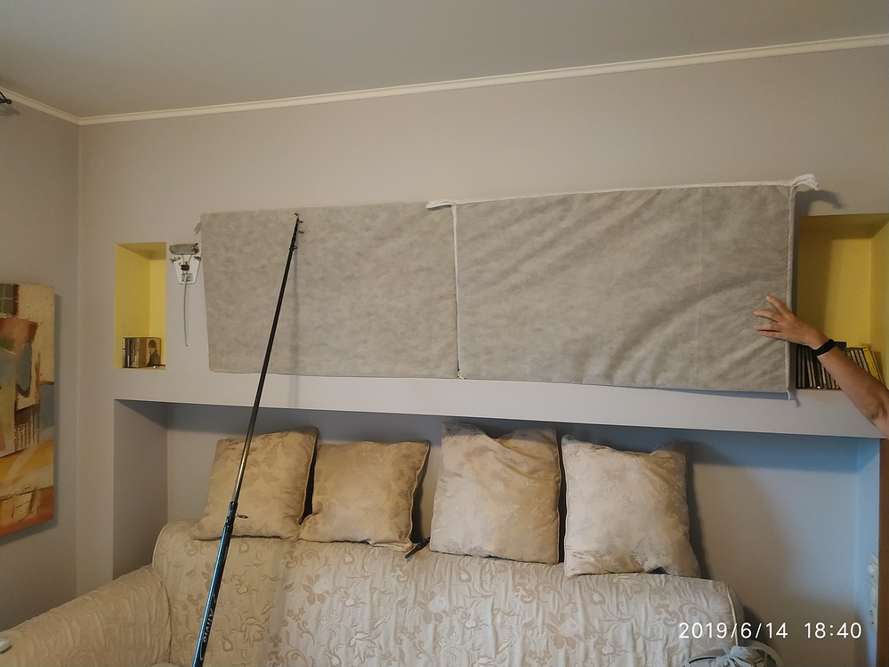 Между диваном и верхней частью похоже примерно тоже 50 см, тоже может вносить вклад на этой частоте.