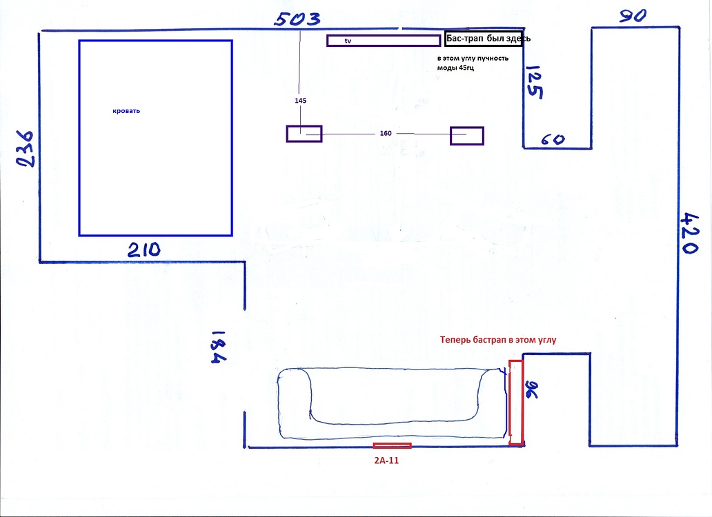Примерно на удалении мк 150см от тыльной стены моды 47гц вообще нет. Но кривовато выше по частоте.
