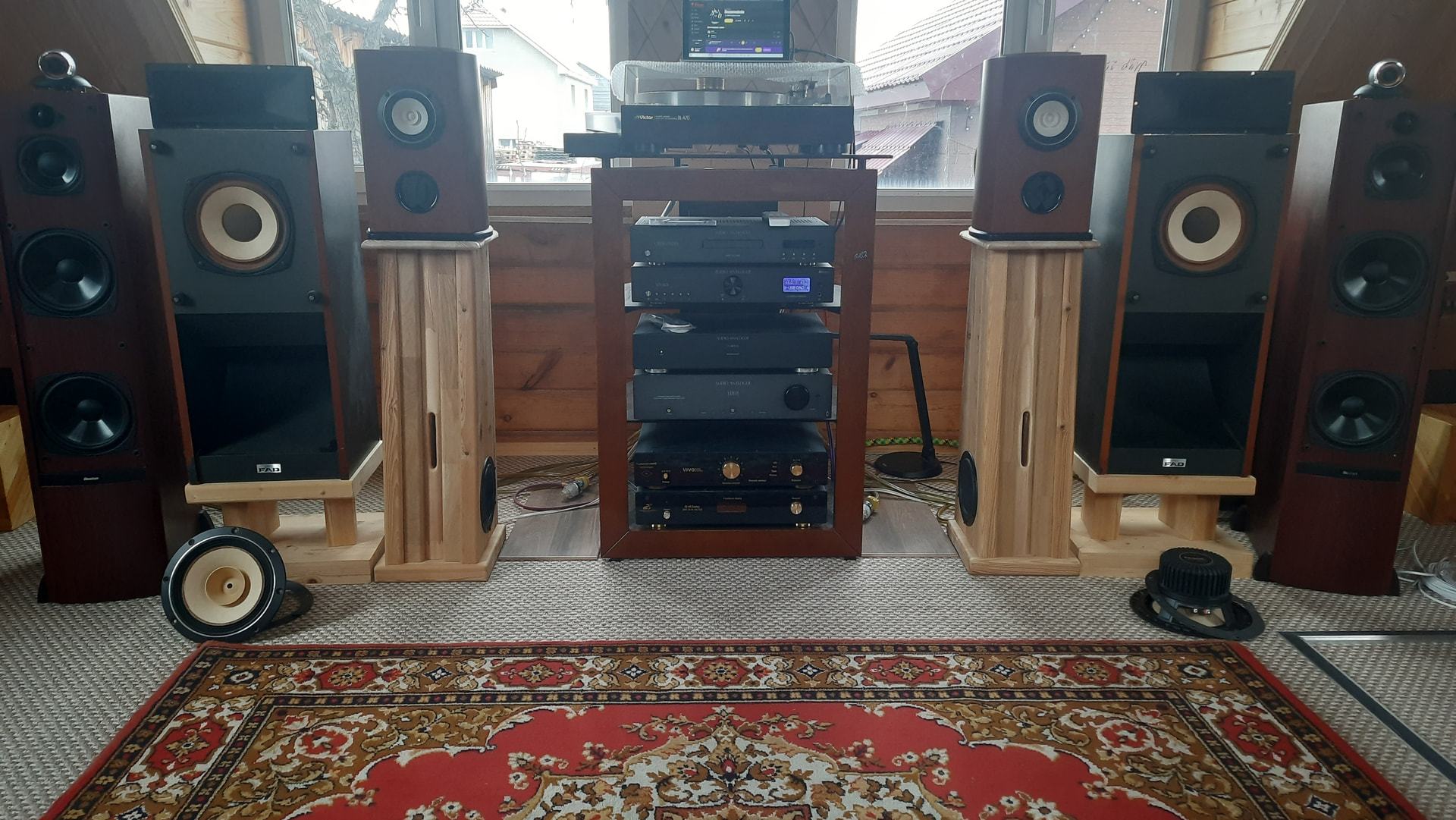 Пока ждал Фостекс, поменял межблочники не помню начто, поменял аудио провода на посеребрённые Daxx и самое смешное просто снял грили. Грили там металическая перфорированная сетка.