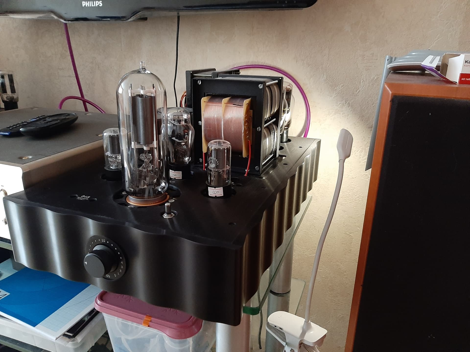Сейчас закончил однотактные моноблоки на 845 триодах(еще даже кожухи не установил). Цвет черный, много рельефа, чтобы точно передать аудитории эту красоту, нужна фотостудия и профессионал в каталожной сьемке.