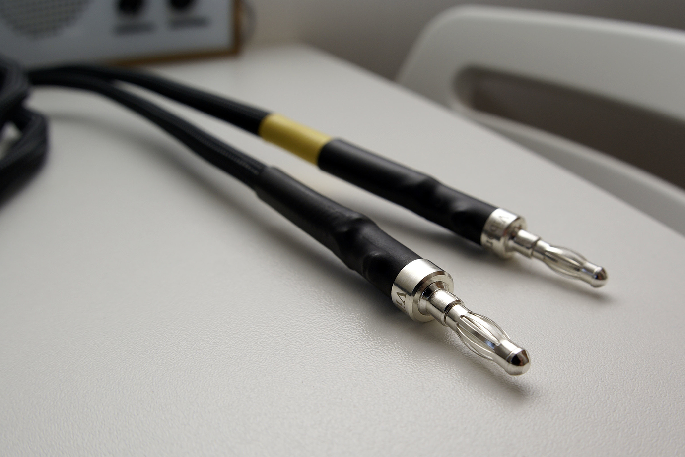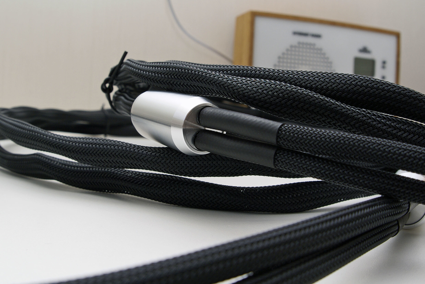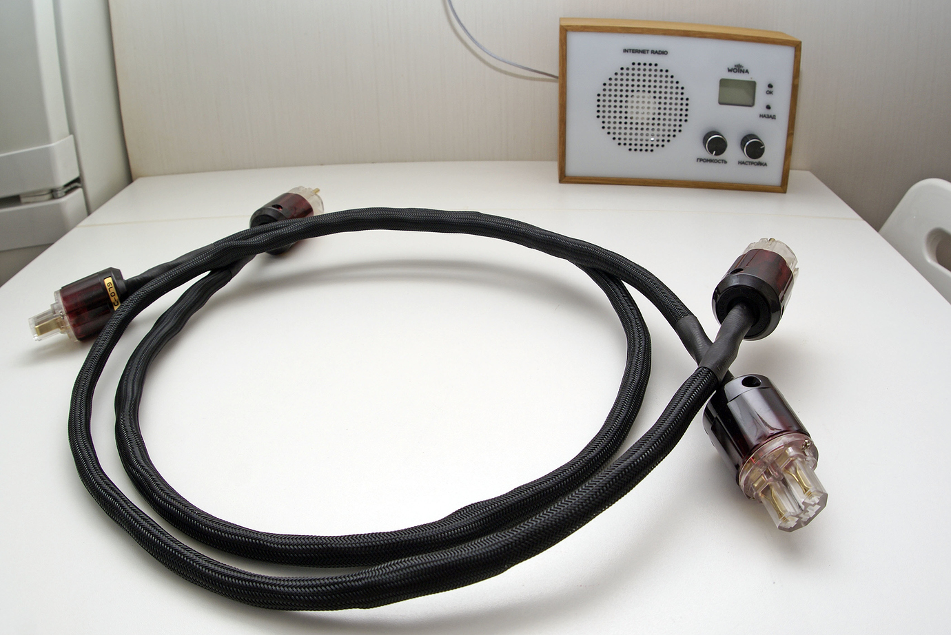 Я долго шел к этому моменту, перепробовал массу разного сырья и мой вывод однозначен. Для открытия звука акустический кабель должен быть моножильным и моножила должна быть как можно древнее. Данный экземпляр свит из 4х моножил сечением 2 квадрата каждая, длина 3 метра в плече. Соответственно, всего в нем 12 метров драгоценной жилы, в тканой изоляции, пропитанной воском, сверху укрыт “змеиным” кожухом; гарды из фрезерованного алюминия, высококачественные разъемы типа “банан”. Фото: