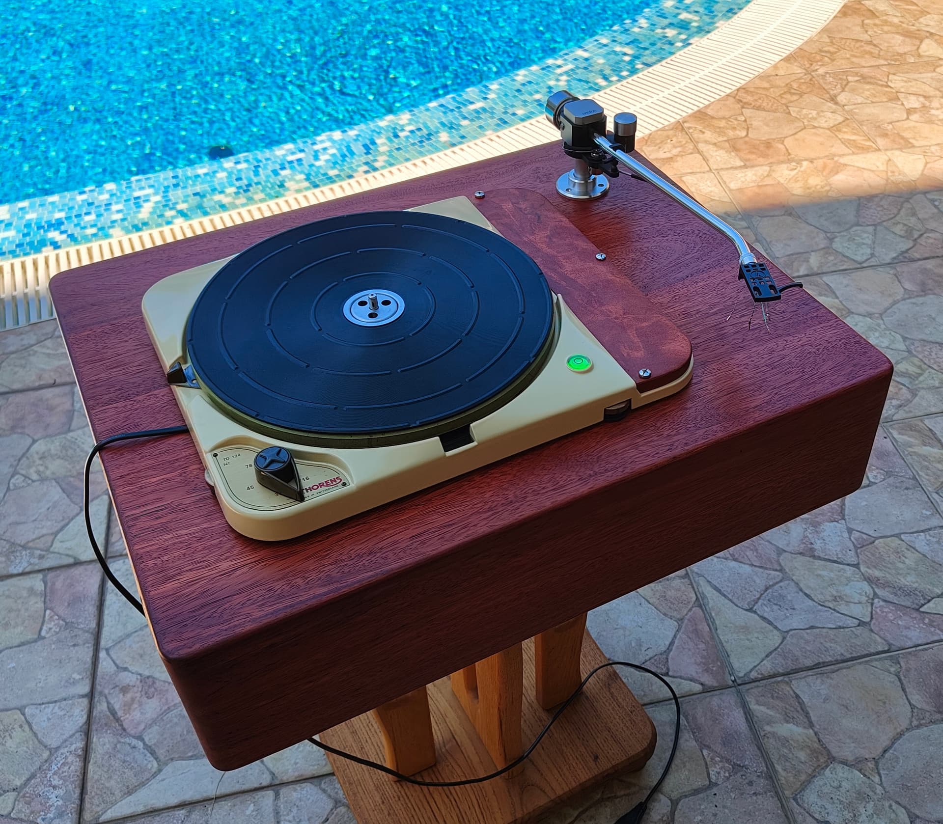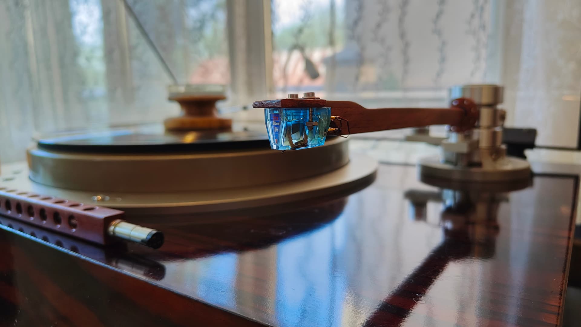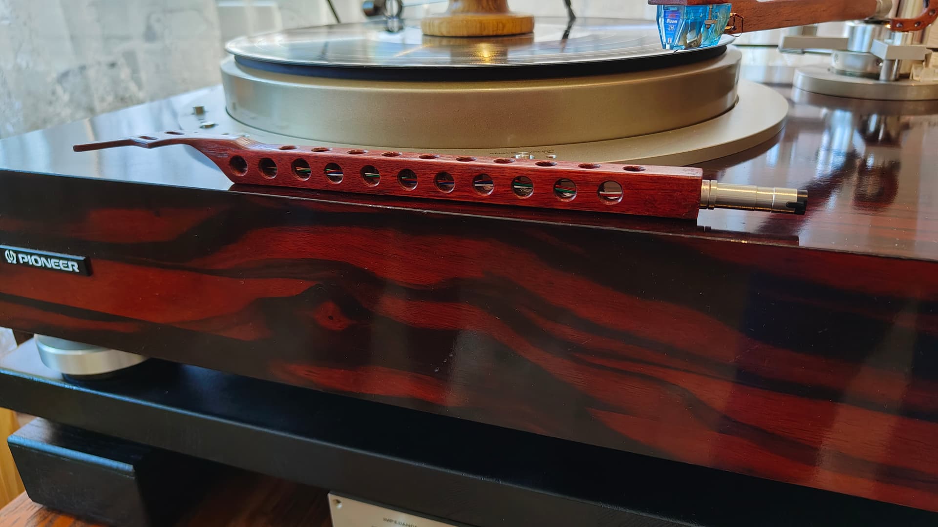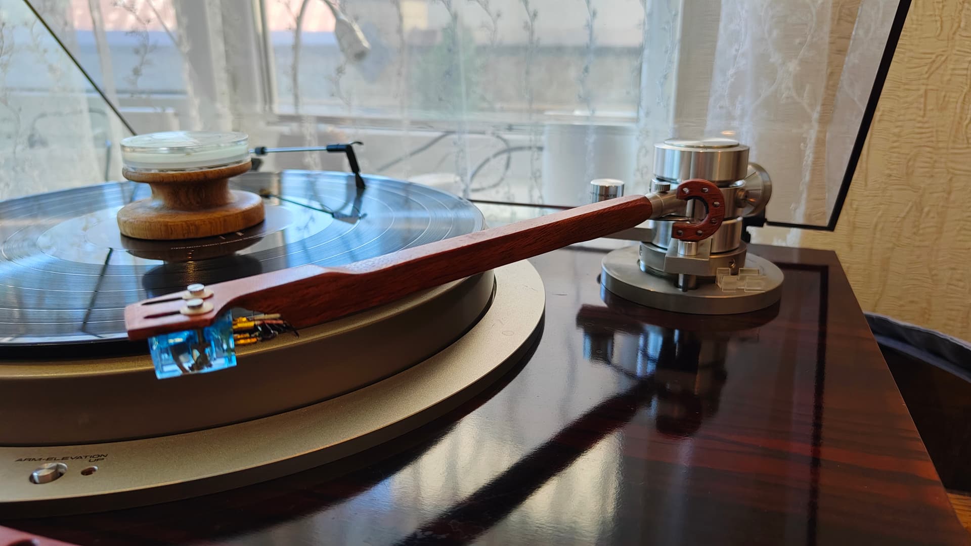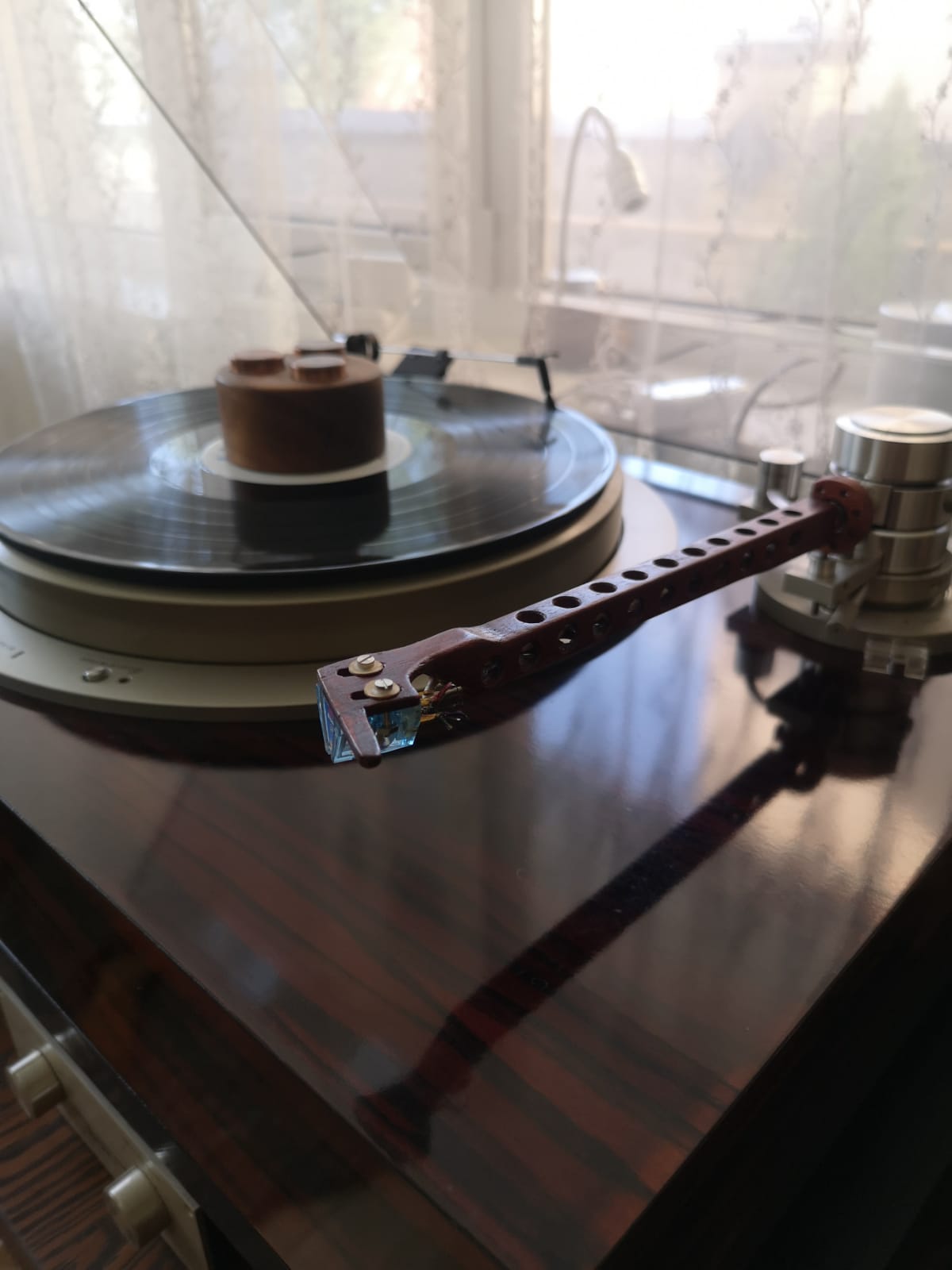 Сегодня с утра настроили новую рукодельную трубку тонарма из палисандра. Начали со сплошной конструкции трубки: