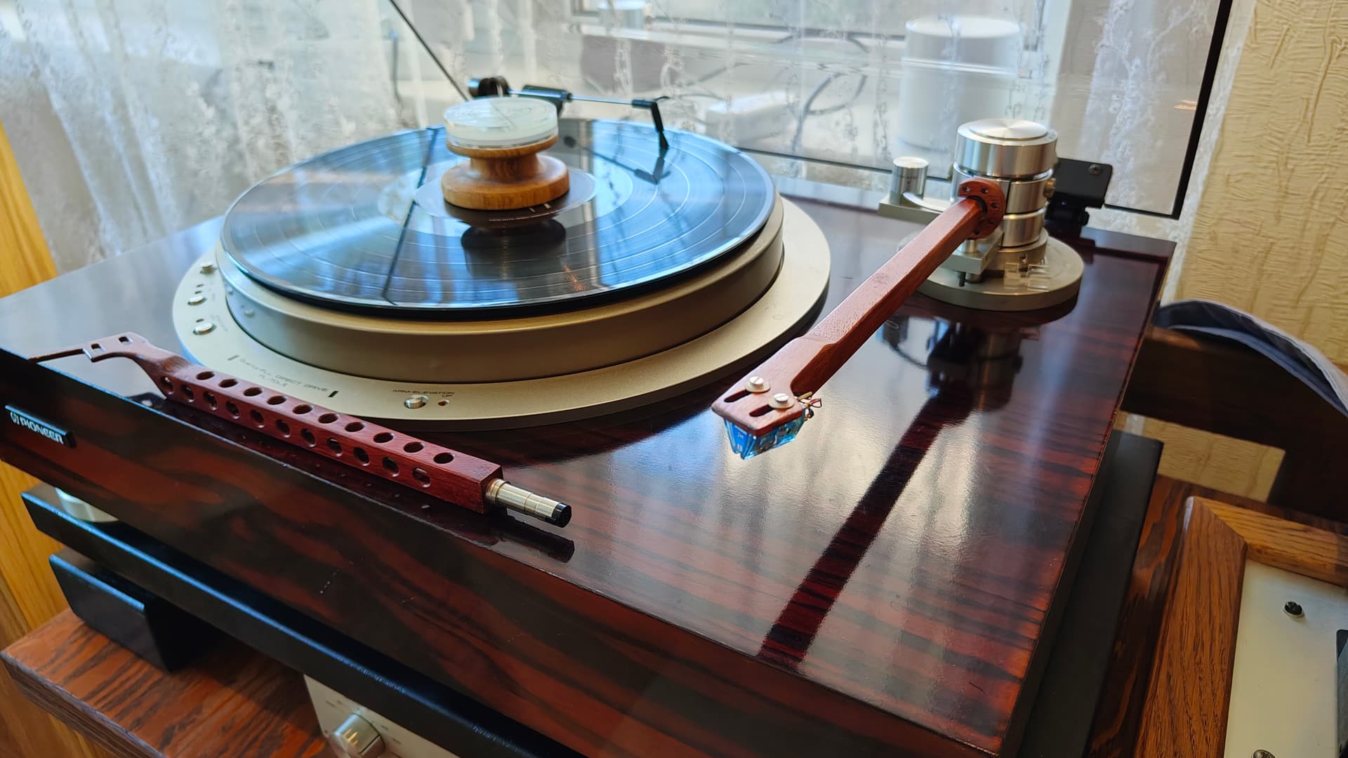 Вертушка Pioneer PL70LII на антивибрационной платформе на засыпных подставках.