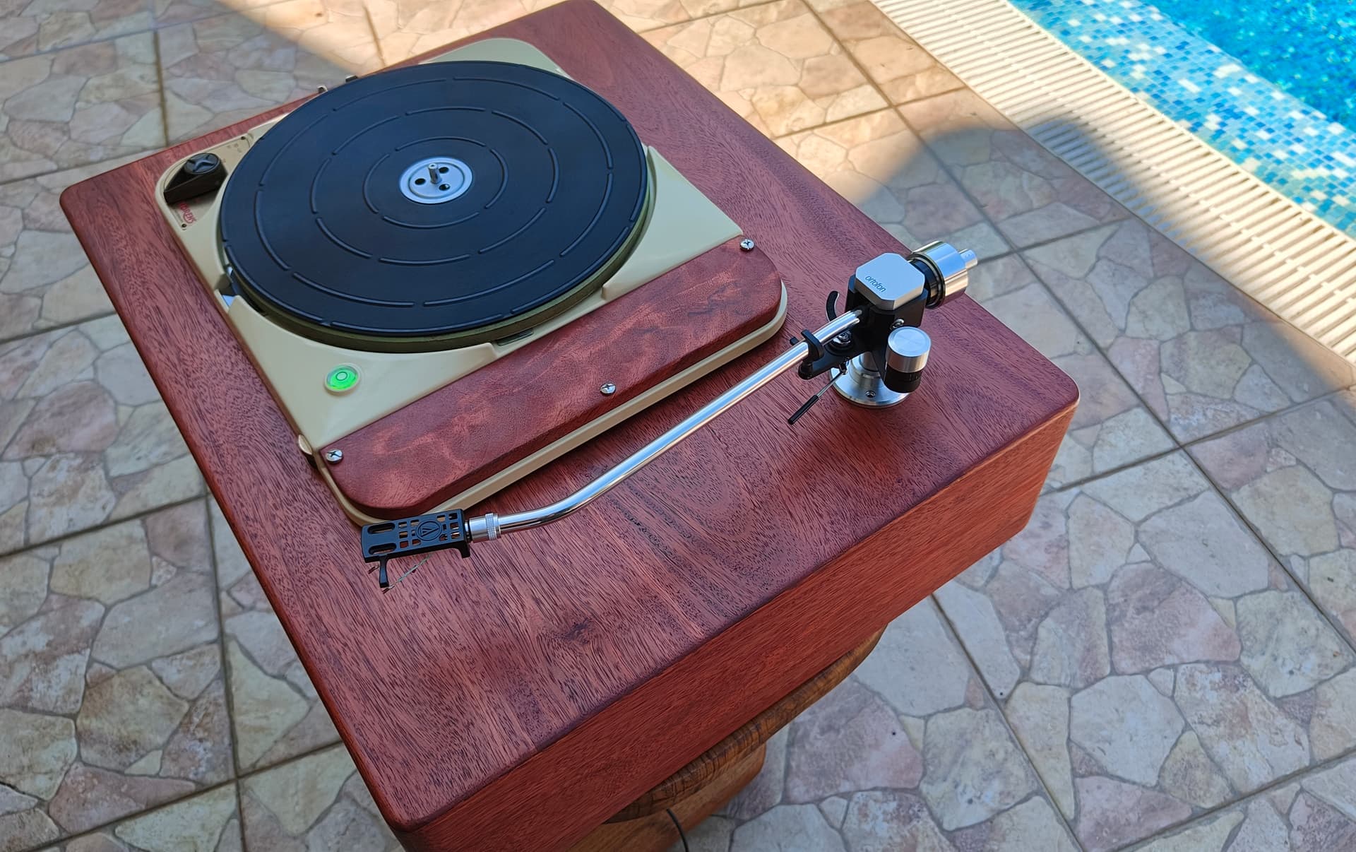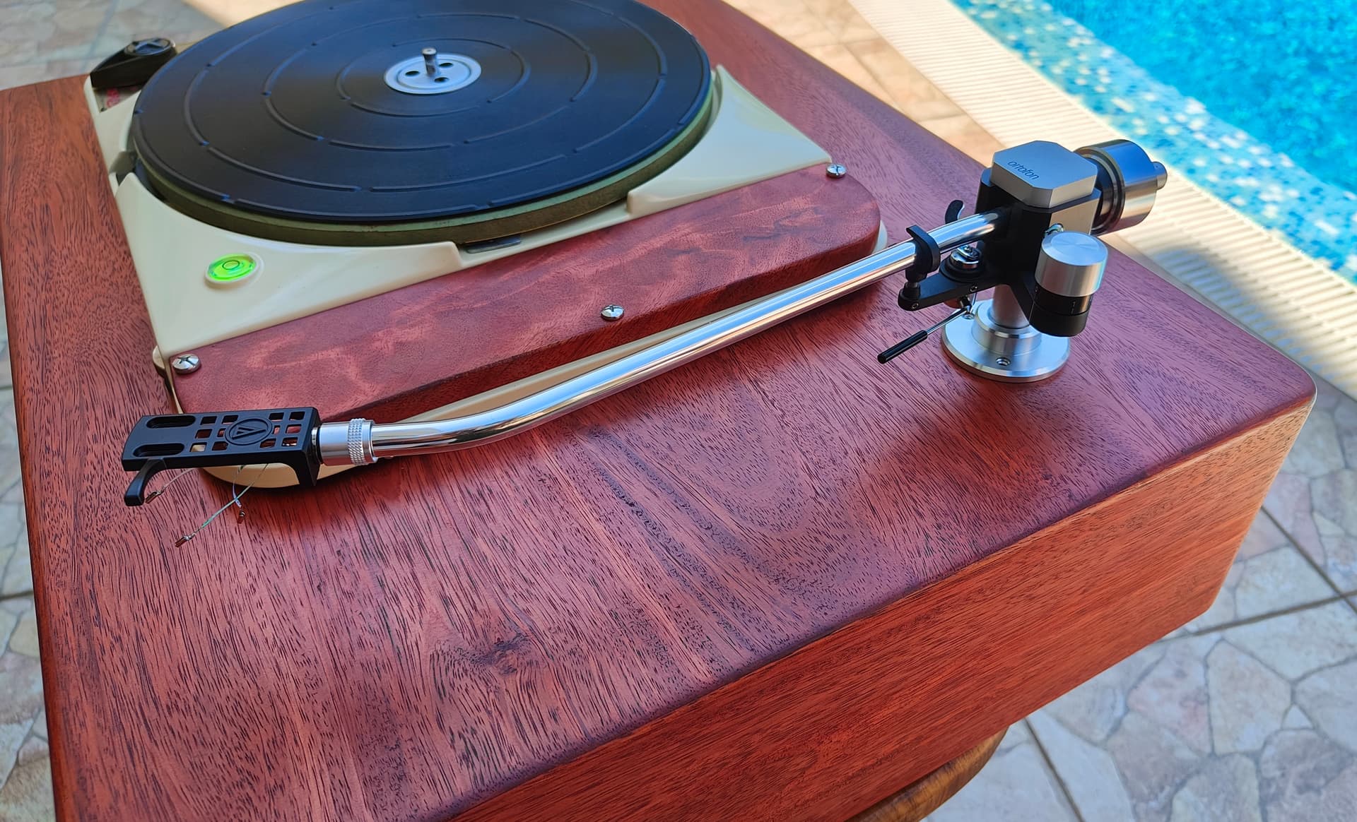 Установили 13-дюймовый тонарм Ортофон по шаблону из комплекта тонарма. Головка пока просто так, думаем поставить знатную царапку Ortofon SPU с чудовищным прижимом ))