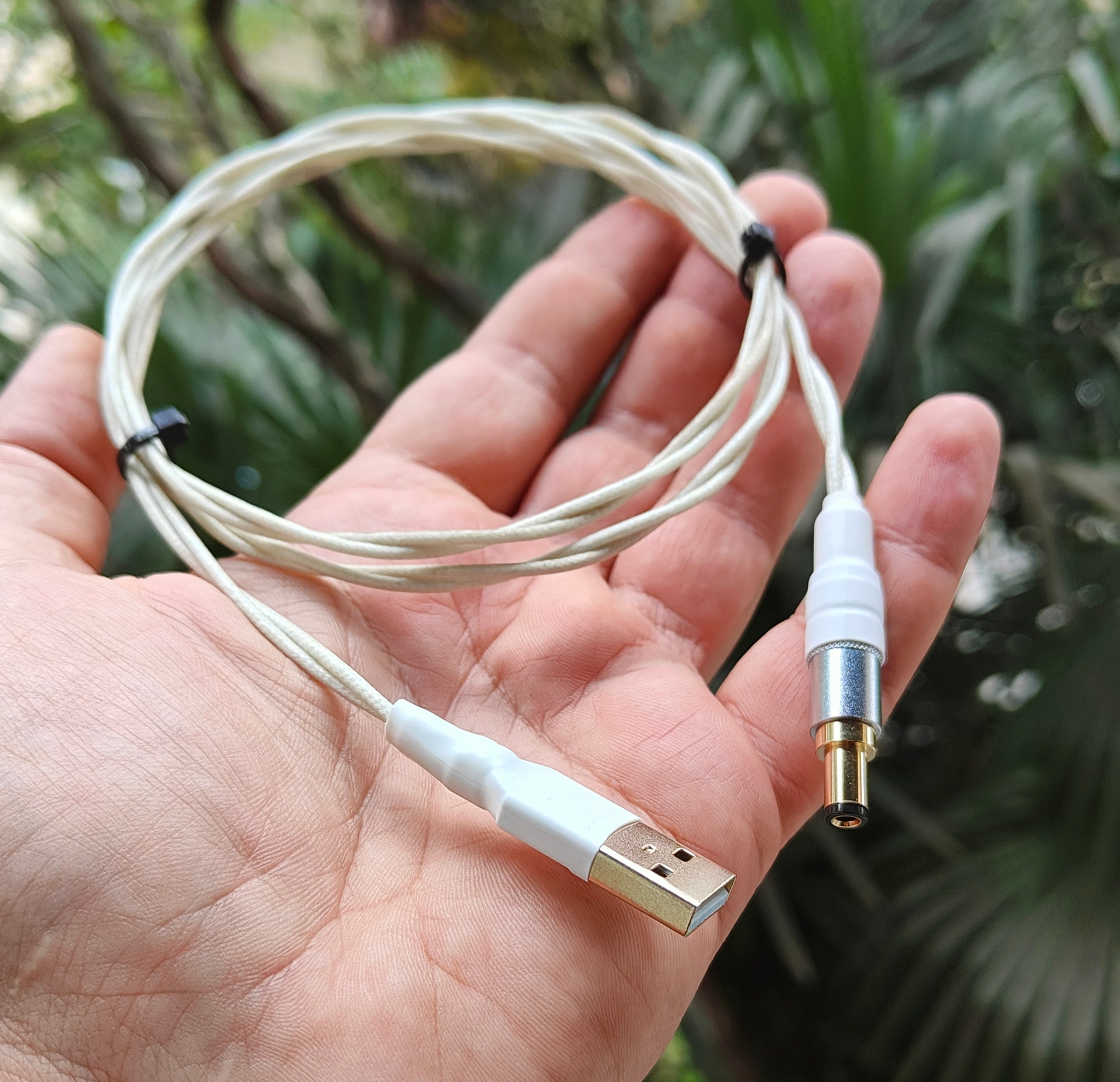 Питание от ЛБП USB-A –> DC 5,5 x 2,5 на миллиметровых жилах в стеклоткани, винтаж, содержит серебро.