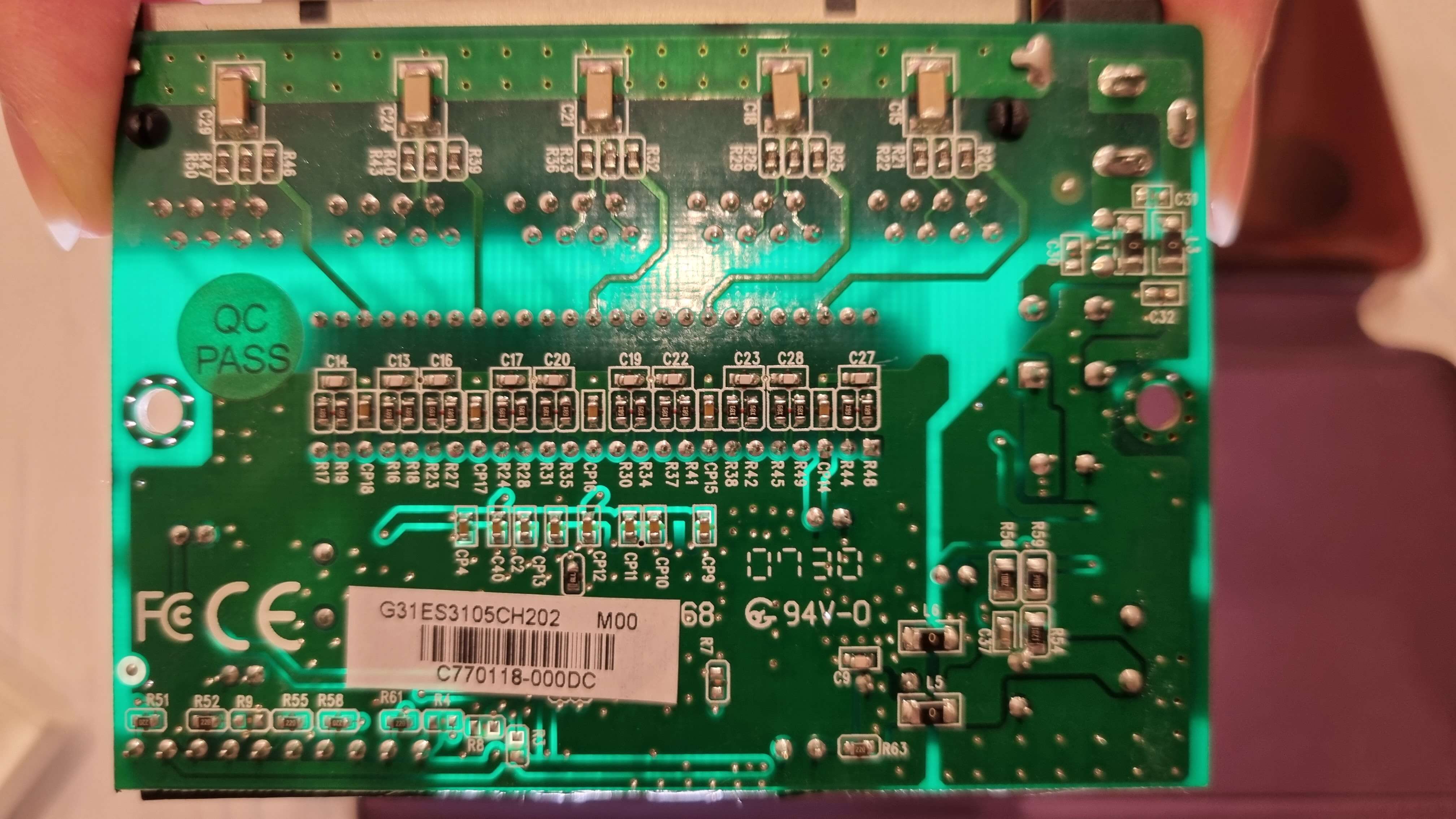 У меня сейчас Zyxel ES105 v3 на руках нет, а внутри я свой не фоткал. В теме фото не нашёл, но вот фото из интернета