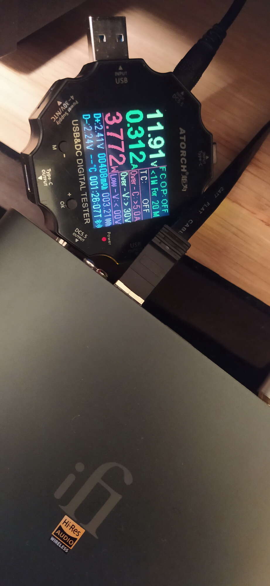 ZEN Stream (12/1А) - при 12В, играет локальный файл 0,312А - 0,3278А, при старте было до 0,399А: