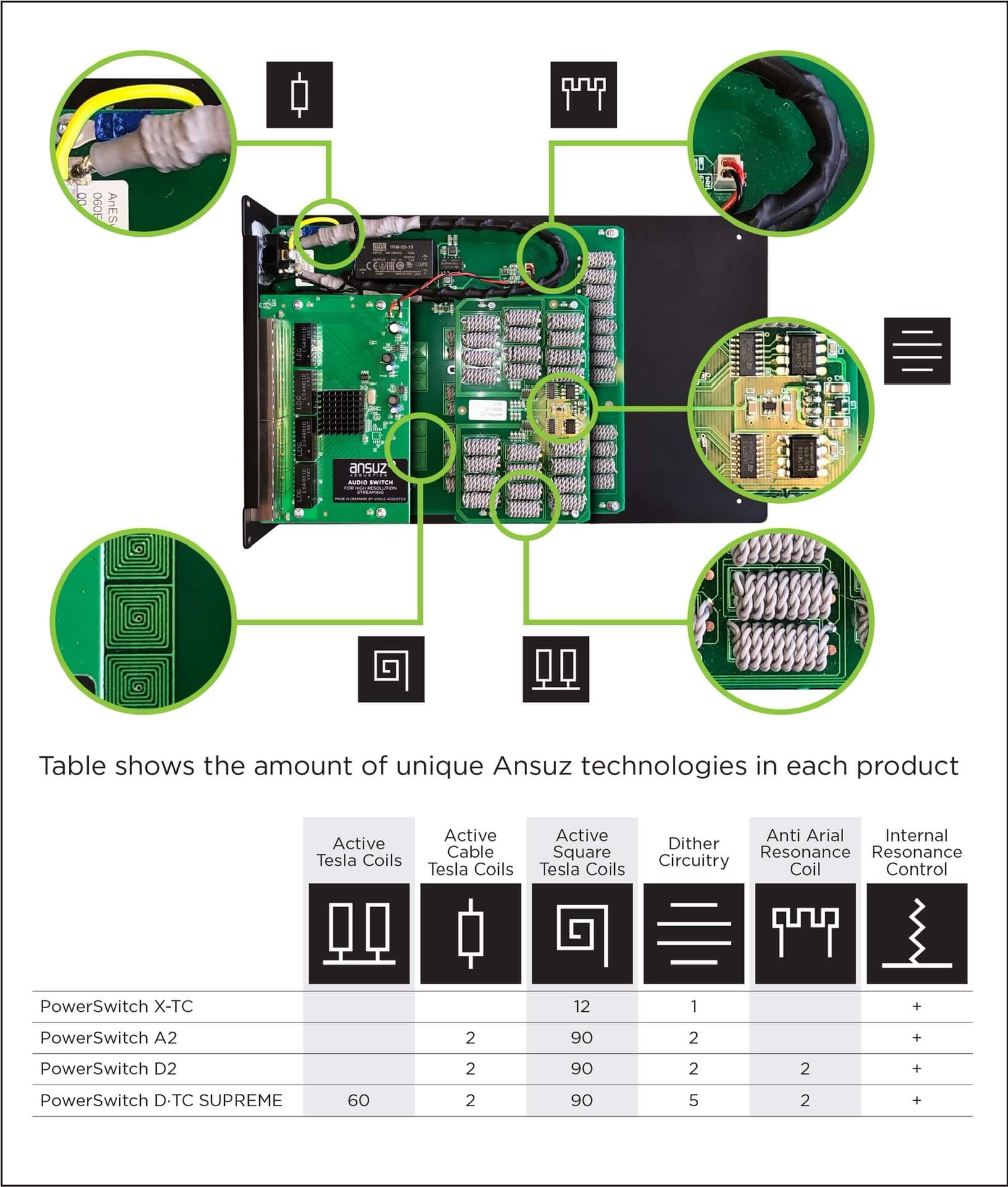 Насколько я понял их маркетинговые материалы, свитч Ansuz полноценно работает только с их сетевым кабелем и дистрибьютором, где размещена половина технологий.