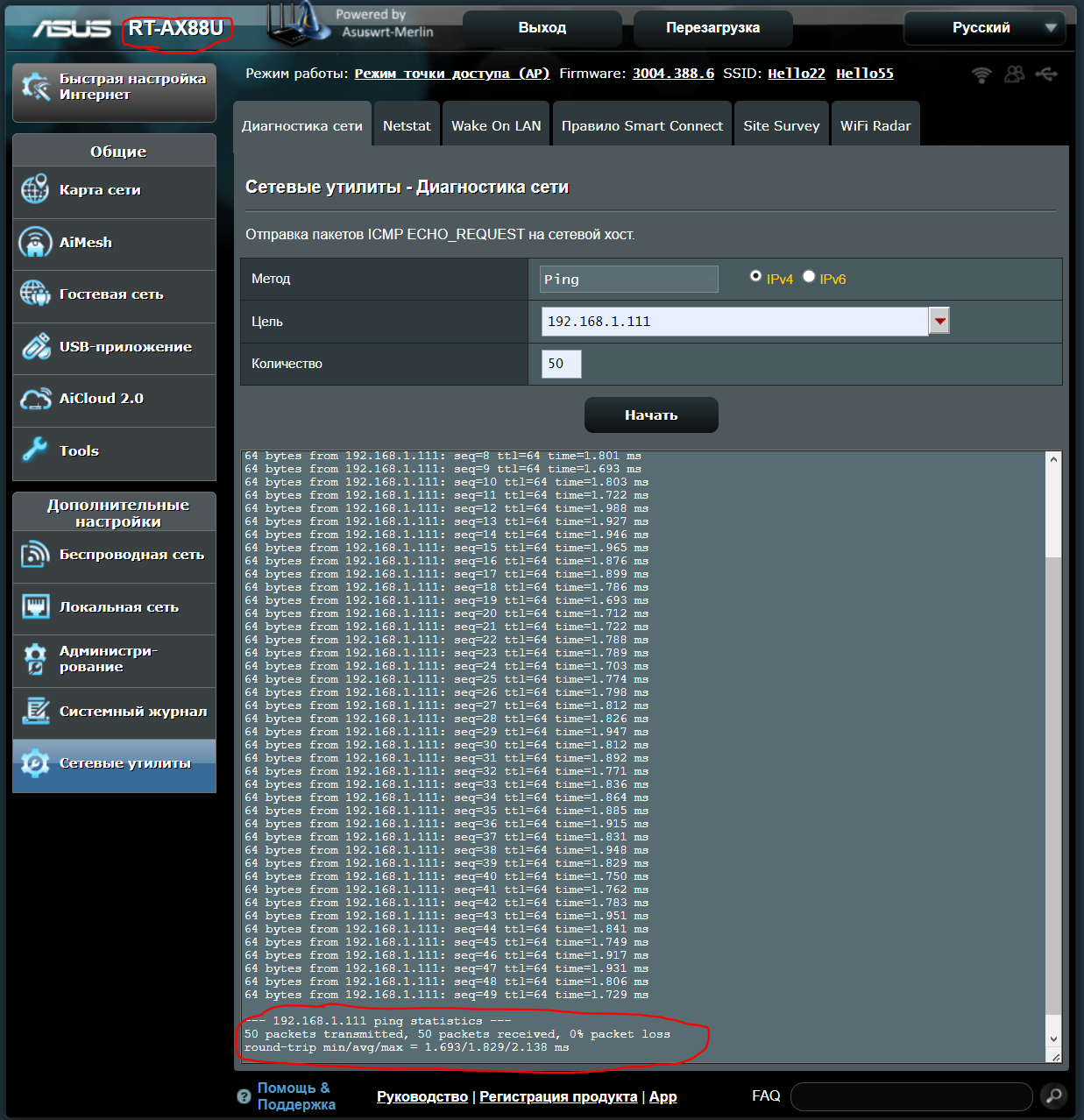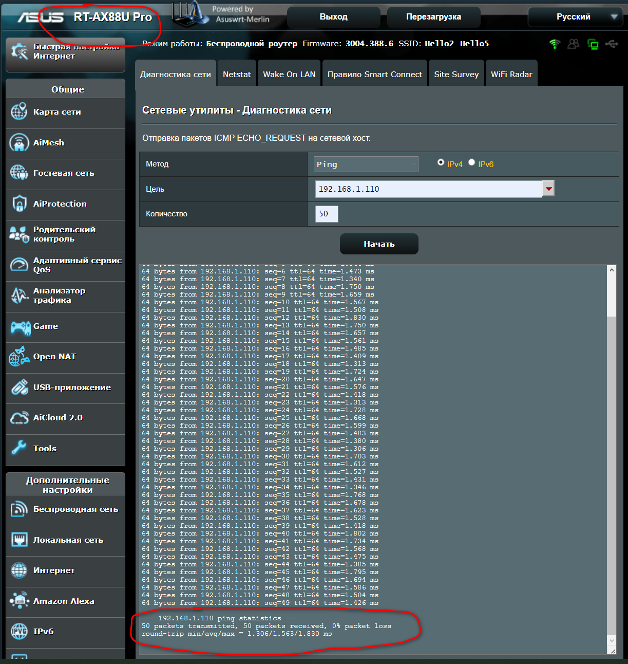 Ну а AX88U Pro - пинг 1.3-1.5мс