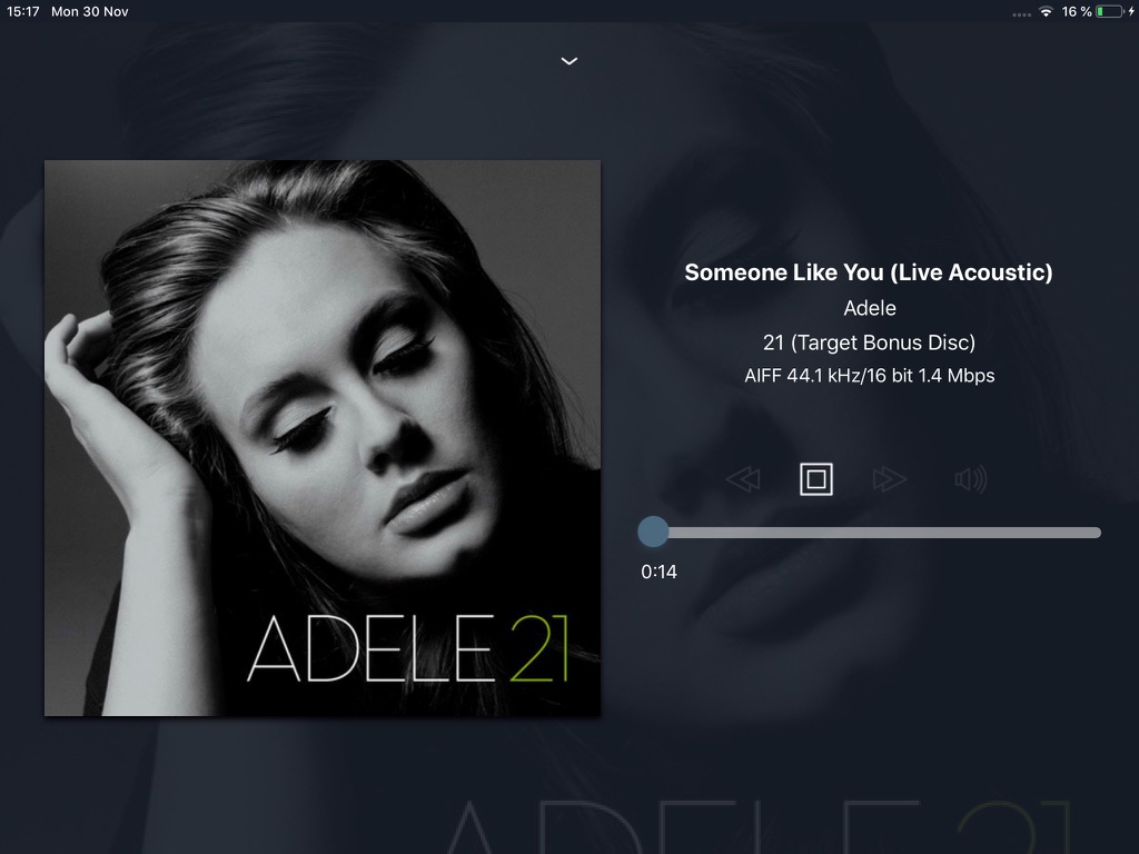 Коммуницировать с Roon умеет частично — отображает трек, картинку, параметры трека, нажатие на стоп равносильно переходу на следующий трек в плейлисте.