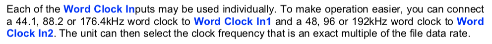 Там написано ИЛИ, т.е. клок будет менять частоту. Вот и вопрос, как клок будет синхронизирован, когда он узнает, что трек 44 или 48, возможно я не знаю, но я думаю, бридж ему об этом не скажет, бридж просто принимает сигнал. Я почти в этом уверен, потому что хотел купить клок от паганини и оказалось, что тогда нужно будет переключать частоты на клоке вручную, бридж не умеет клоку сообщать, какая частота ему нужна.