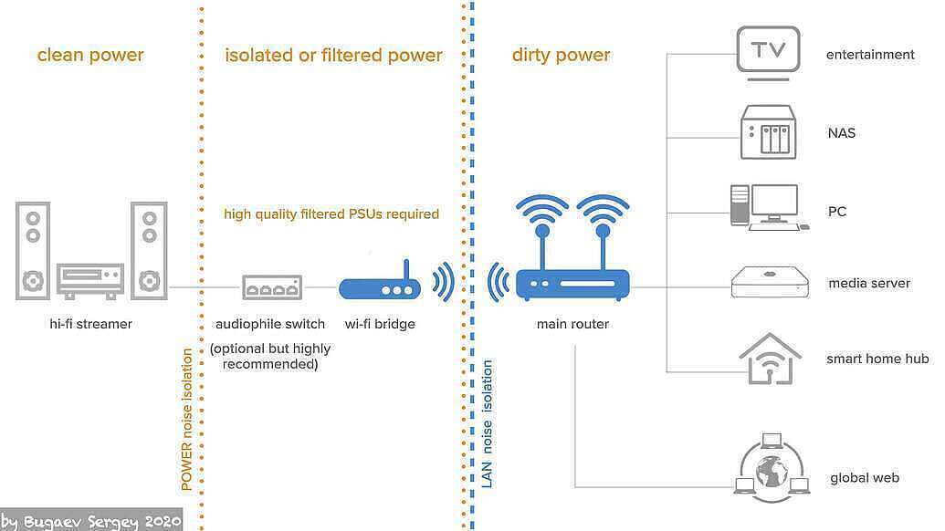 У меня роутер 2х диапазонный, 5ГГц выделить под мост, а 2.4 оставить для “бытовухи”…