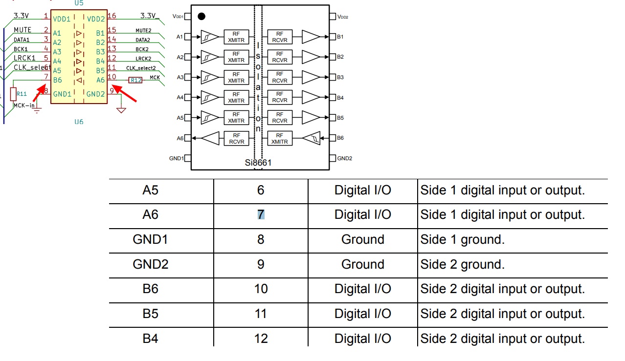 BBB_reclk изолятор U5 вывод 7 (B6) и 10 (A6) с даташитом не совпадают - так задумано или ошибка в библиотеке KICAD?