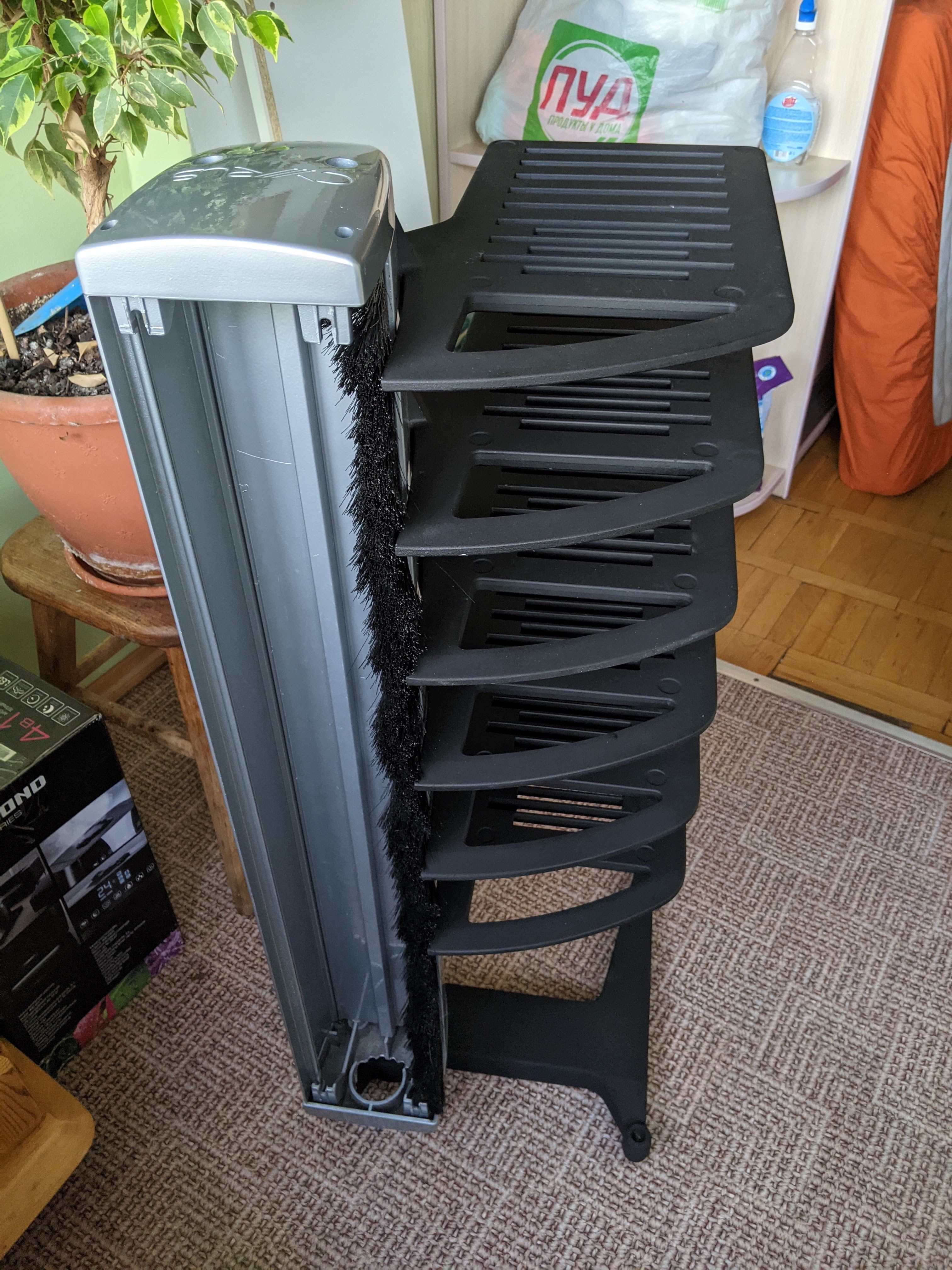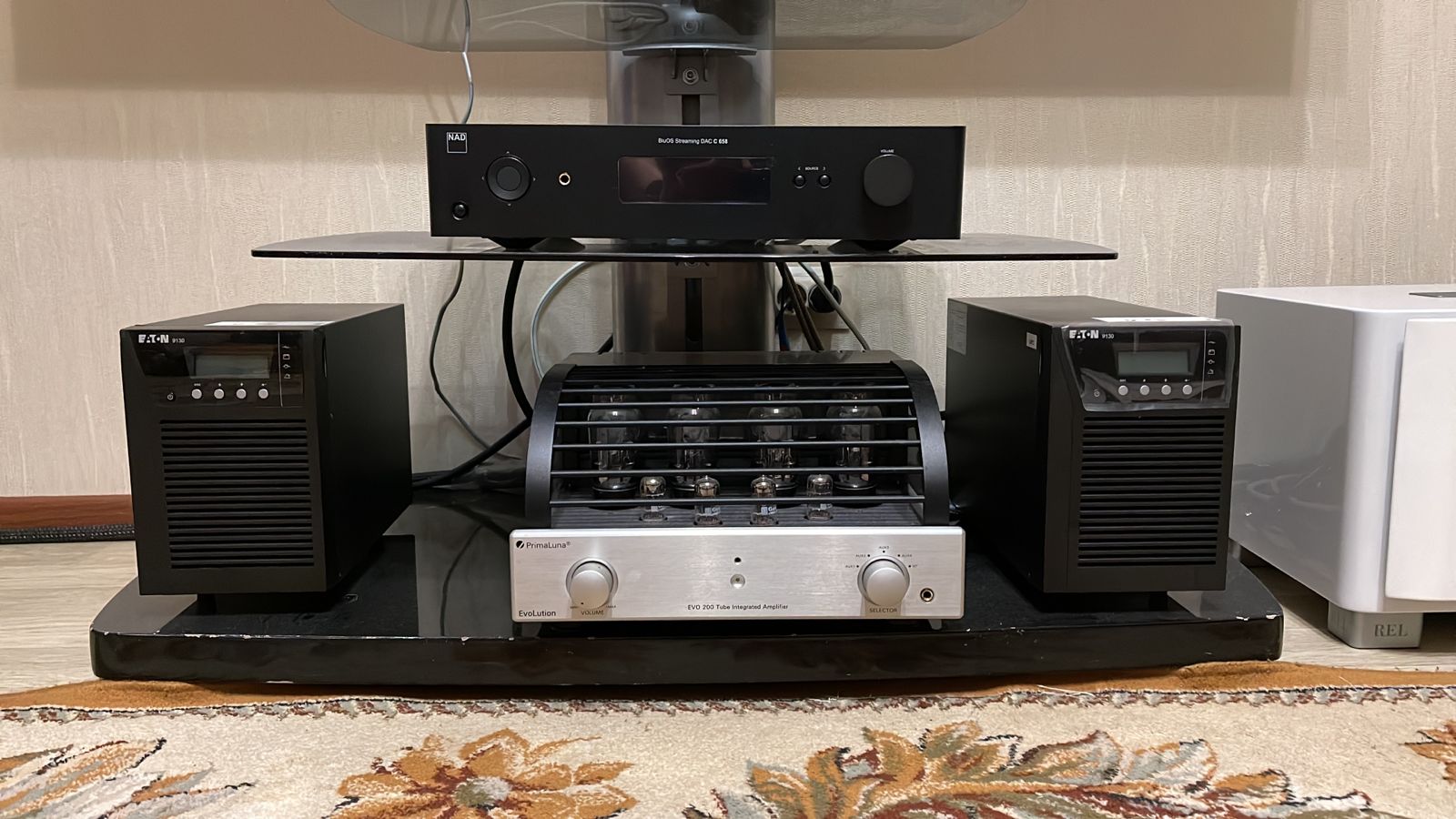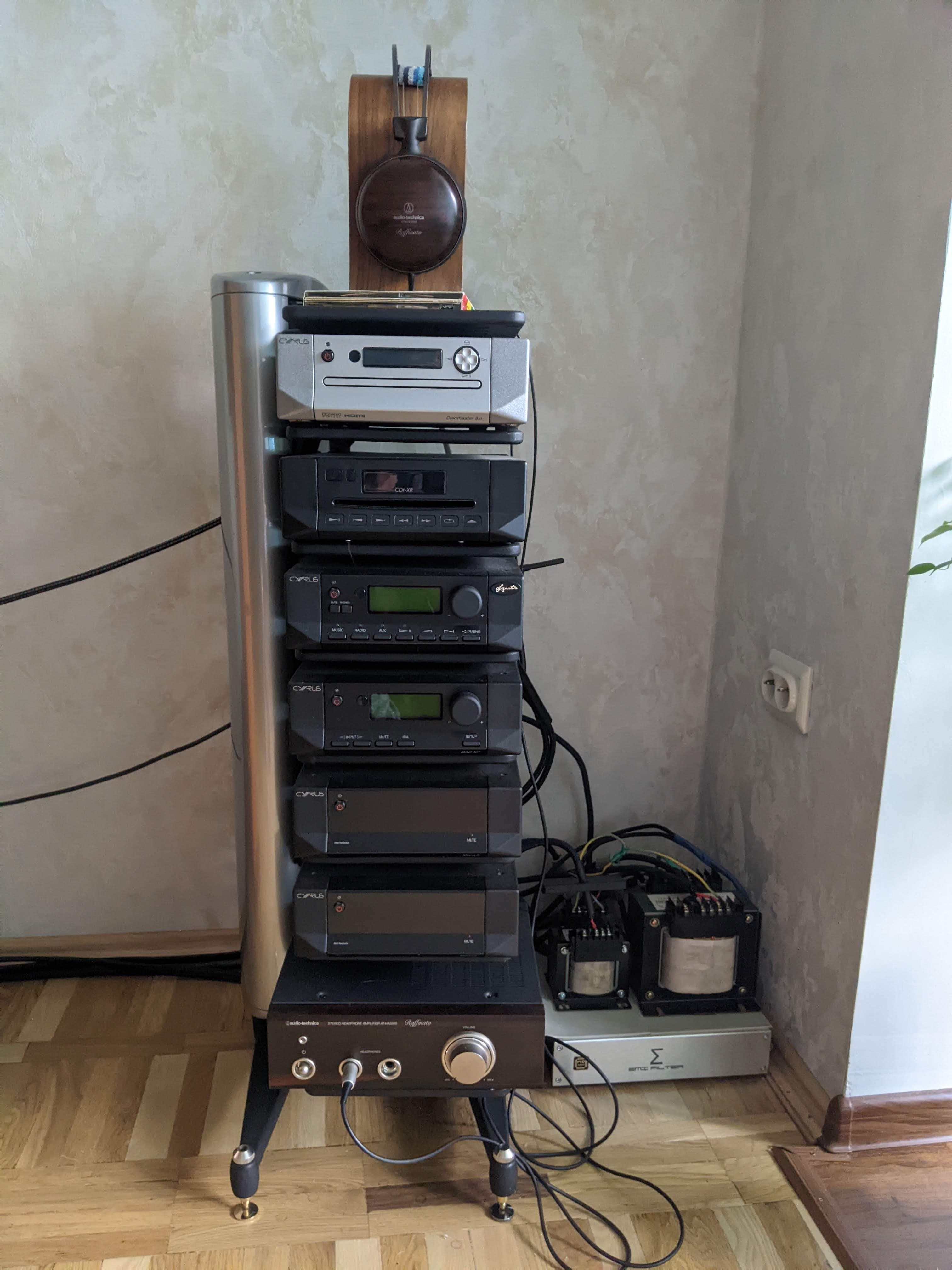 Причина покупки - идея интегрировать цилиндр распределителя в стойку Cyrus Hark. В результате снизу стойки выходит один силовой кабель. Излишки кабелй на компоненты прячутся в колонне стойки.