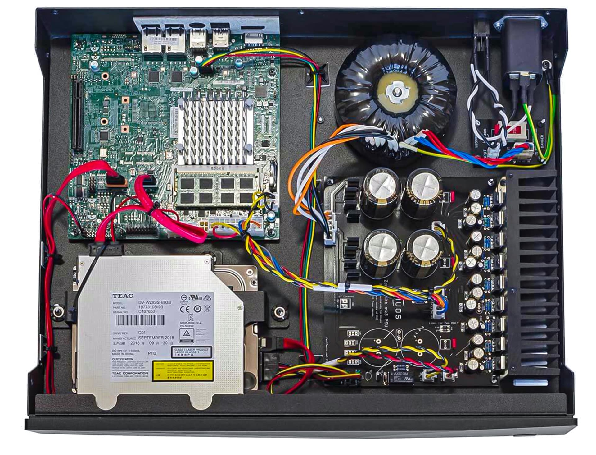 Новая кастомная материнская плата Innuos полностью переработана для оптимизации и производительности звука. Источники электромагнитных помех были сведены к минимуму, а внутренние часы оптимизированы, что привело к «черному» музыкальному фону и усилению реализма во время воспроизведения музыки.