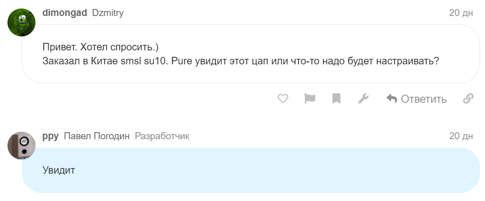 К какому совету, в чем его практическая польза? Все регулировки громкости 100%. Другой ЦАП, SMSL D300 не имеет данной проблемы. И еще многие другие, например, Ares II. Вы решили потроллить?