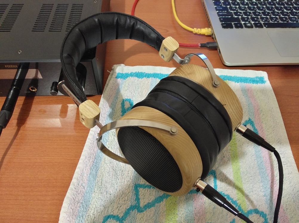 Качественное изготовление, приятные материалы, мне понравилось. Хотя и угадывается хендмейд, но такой хендмейд я предпочту многим фабричным изделиям. Конструкция минималистская, ничего лишнего, всё продумано и вроде прочно. Наушники оказались заметно компактнее, чем я ожидал; например, мои Sony CD1700 больше, хотя они фабричного производства. Наушники удобные, вес ощущается умеренно. Из недочетов отмечу неудобную регулировку высоты оголовья - на ощупь нелегко найти положение фиксации узла, а также отсутствие индикаторов Right/Left. Оба неудобства разовые - настроил оголовье, подключил кабель и забыл.