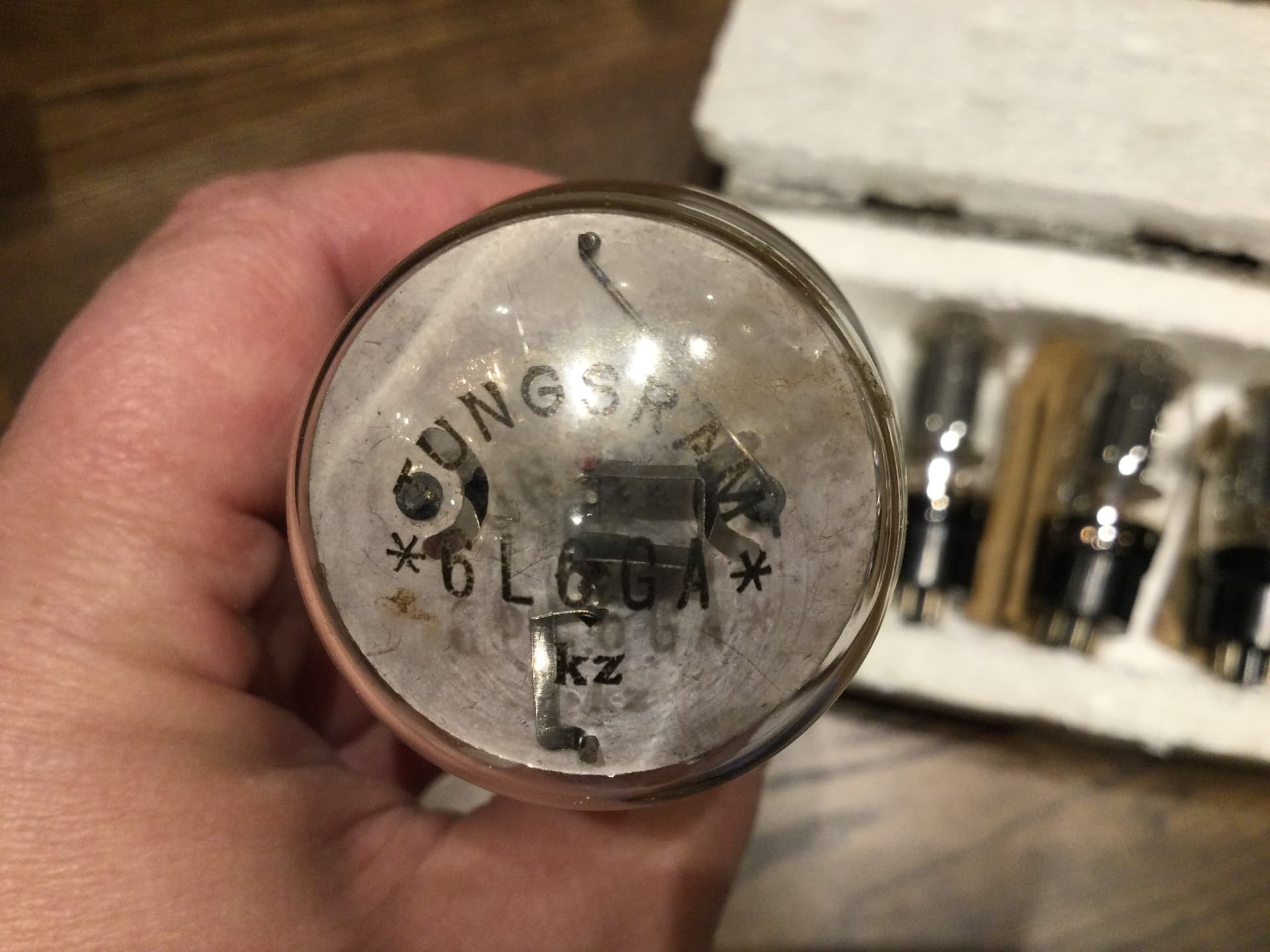 В комплекте лампы отечественные. Бонусом даю 4 лампы 6L6 TungSol + одну запасную. Играют отлично, но, под крышку не влезают.