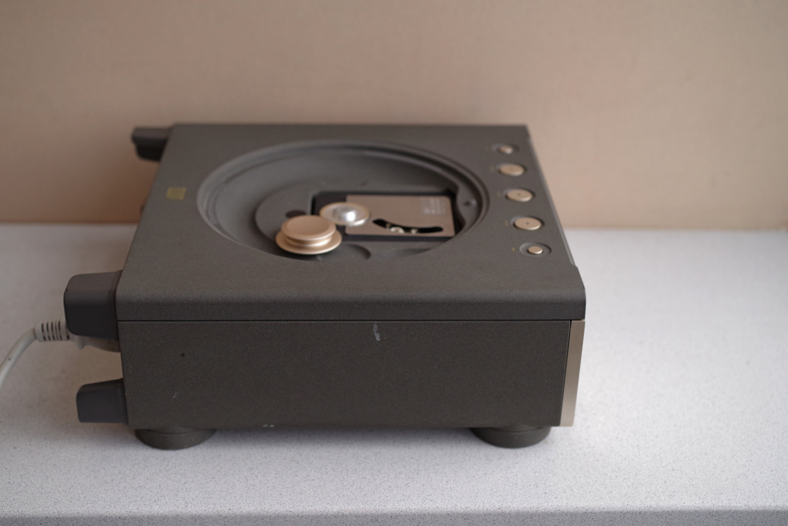 Вторая версия 23-го проигрывателя, единственная на CDM-9 PRO. Хорошее рабочее состояние. Читает все. Косметика на фото, имеются царапины потертости. Напряжение 230V. Из недостатков: не горит голубой светодиод на морде, на крышке имеется скол (скол с внутренней стороны, фото не точно отражает размер потери, в целом, при закрытой крышке, он не заметен, если не зацикливаться, есть фирмы, которые полируют стекло, вначале озаботился, а потом забил - на звук не влияет). Пульт металлический, красивый, не оригинальный. В комплекте кроме пульта ничего.