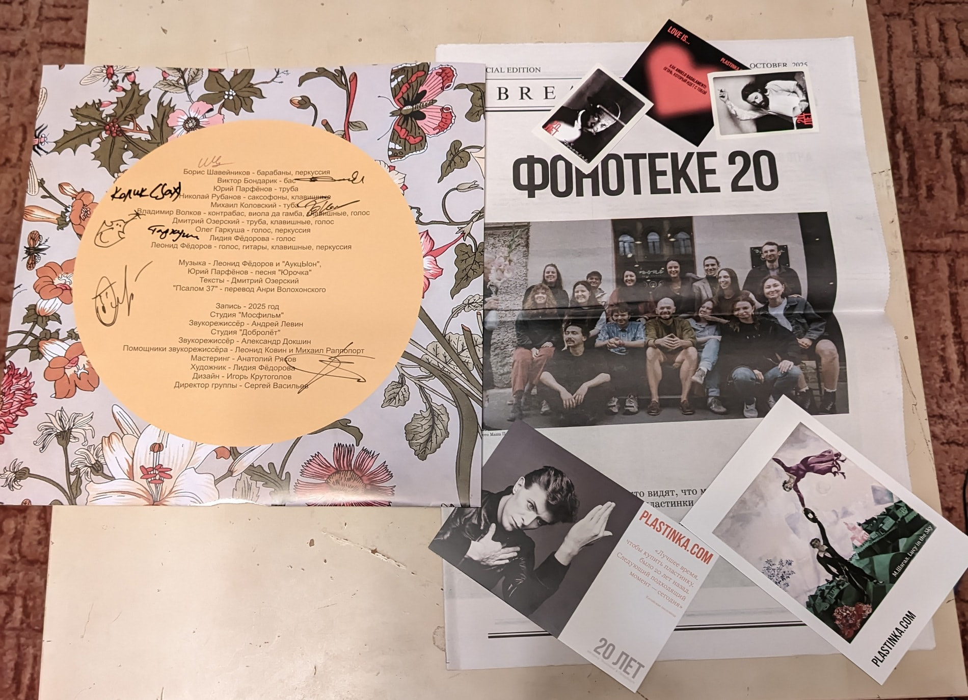 В извинение за долгое ожидание продавец (пластинка.ком) насыпал разного мерча, ну и внутренний конверт, как и обещано, с автографами.