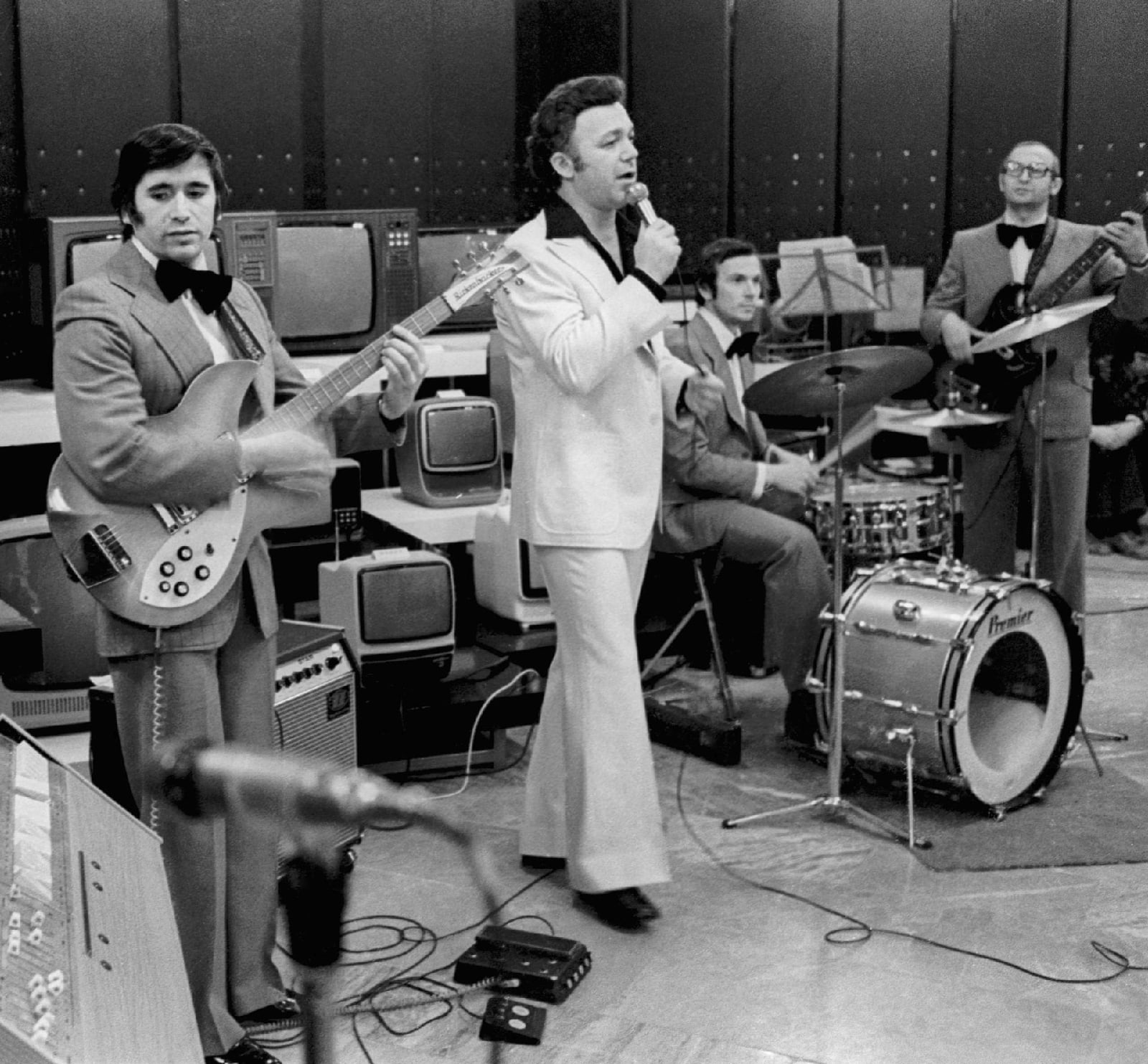 Прекрасный Иосиф.)) Неплохо коллектив экипирован, гитара рикенбакер, барабаны премьер, комбик динакорд. Клавиши не разглядеть, возможно фарфиса…