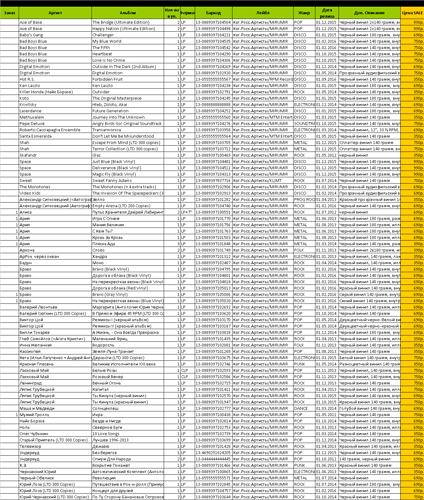 Почему я вдруг сейчас об этом подумал - распродаётся новьё отечественных LP (Ария, Браво,Ляпис Трубецкой и т.д.) Заказ минимум на 10 т.р., а я себе набрал только на 6. Цены около 700 руб/пласт. Может кому-то это интересно?