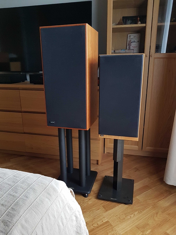 Получится послушать только завтра, наверное. Пока снял с настенных полок (да,да… знаю, что на стене не играют. Блин, ну нет на даче пока другого варианта) и установил на туровые стойки свои Жабли, что бы в сравнении нивелировать вклад звука от стоек. А это, как вы понимаете весьма существенный вклад. Поставил, включил и думаю нафига ж я продал свои стойки?! Это вам не икеевские табуретки и “что там еще подложить”. Ну, приносил бы по мере надобности, потом убирал, все равно снимаю акустику со стены, когда что то слушаю. Смысл то есть и не малый. Видимо буду Айронком теребить. Уже плюсик туру))